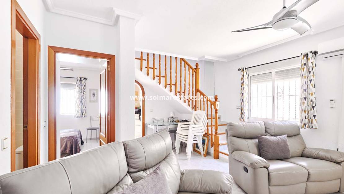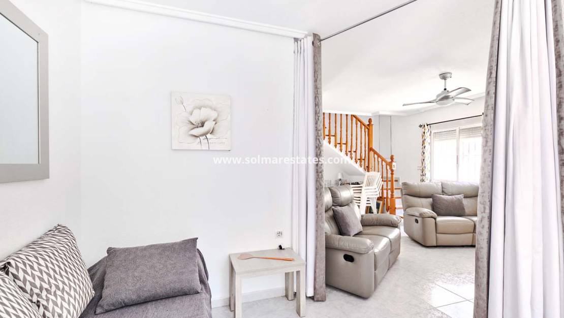 Zeldzame kans om een halfvrijstaande villa met 2/3 slaapkamers en privézwembad te kopen, perfect gelegen in het hart van het dorp Pinar de Campoverde. Op slechts een steenworp afstand van een ruime keuze aan bars, restaurants, winkels, een gezondheidscentrum en een apotheek, profiteert deze woning ook van de ligging op slechts 10 km van de Blauwe Vlag-stranden van Torre de la Horadada en Mil Palmeras.
