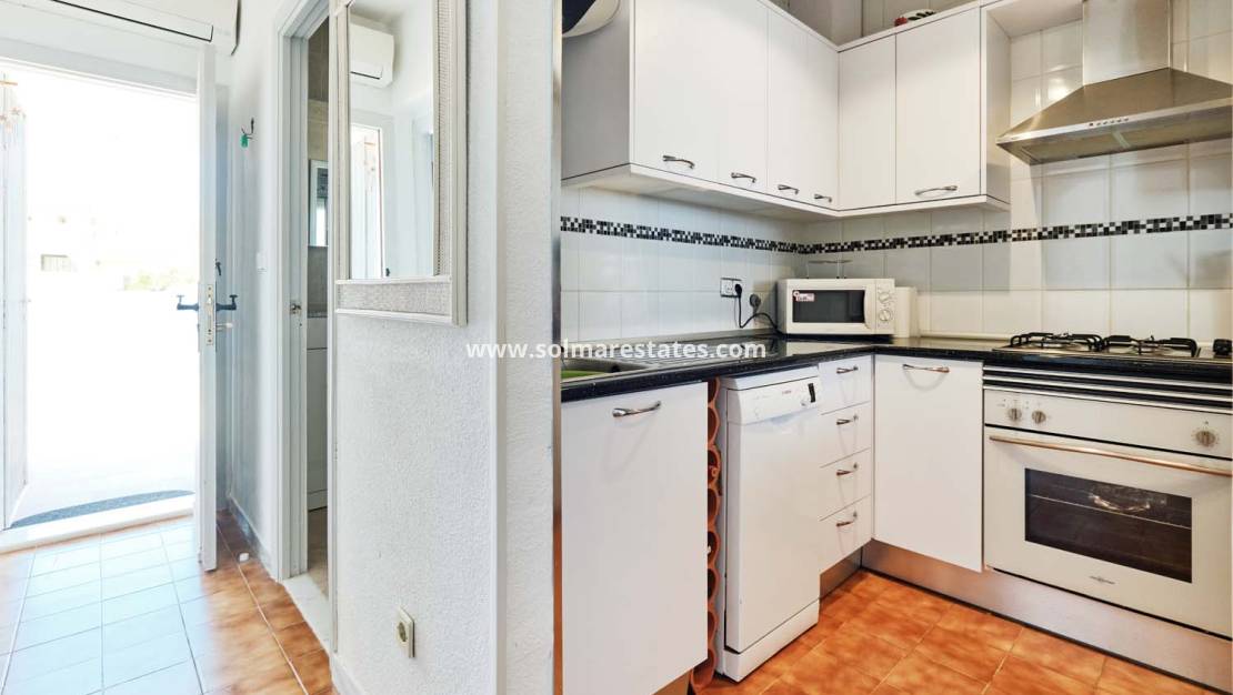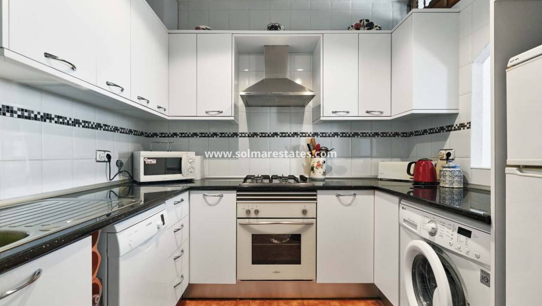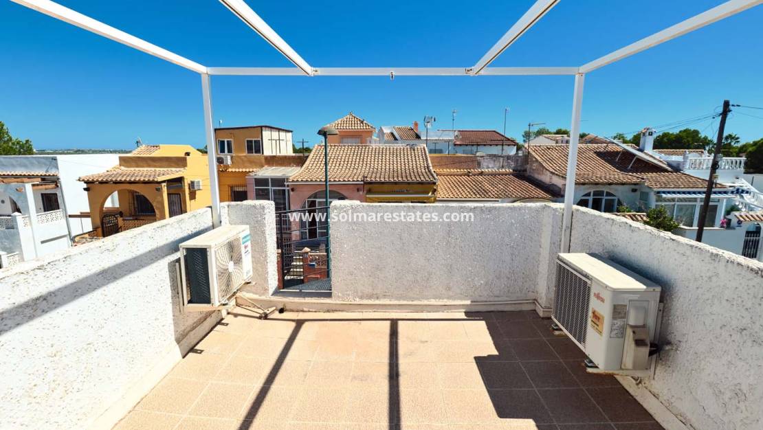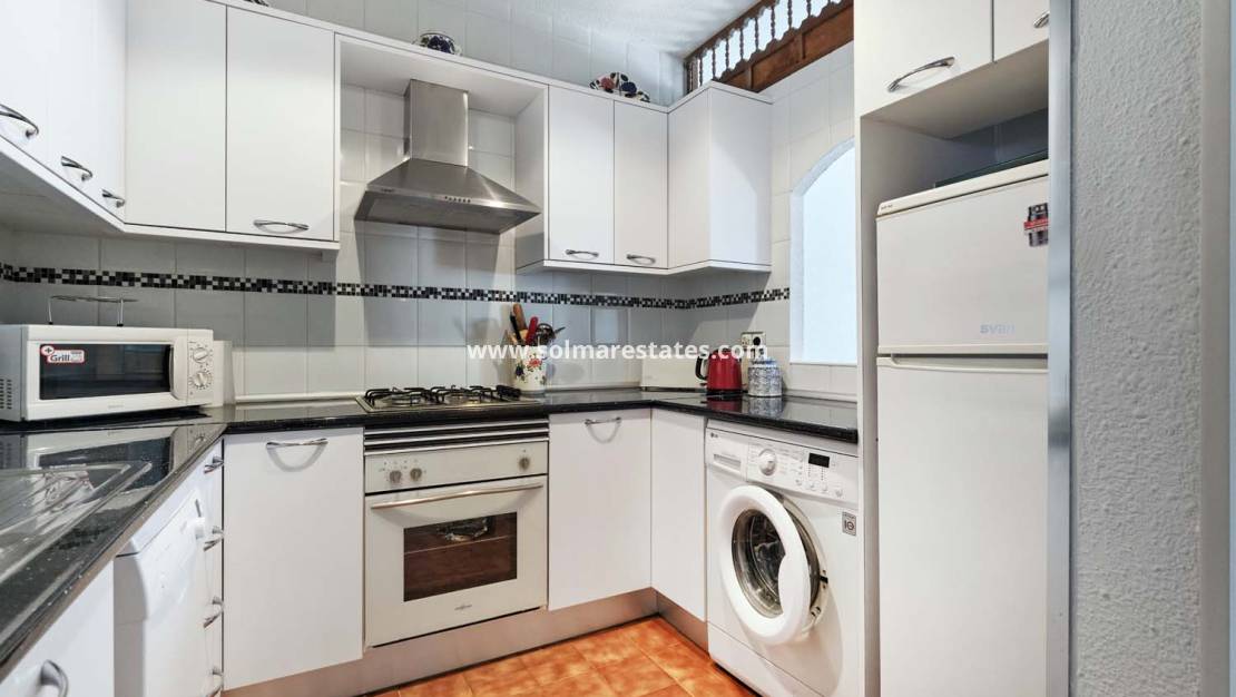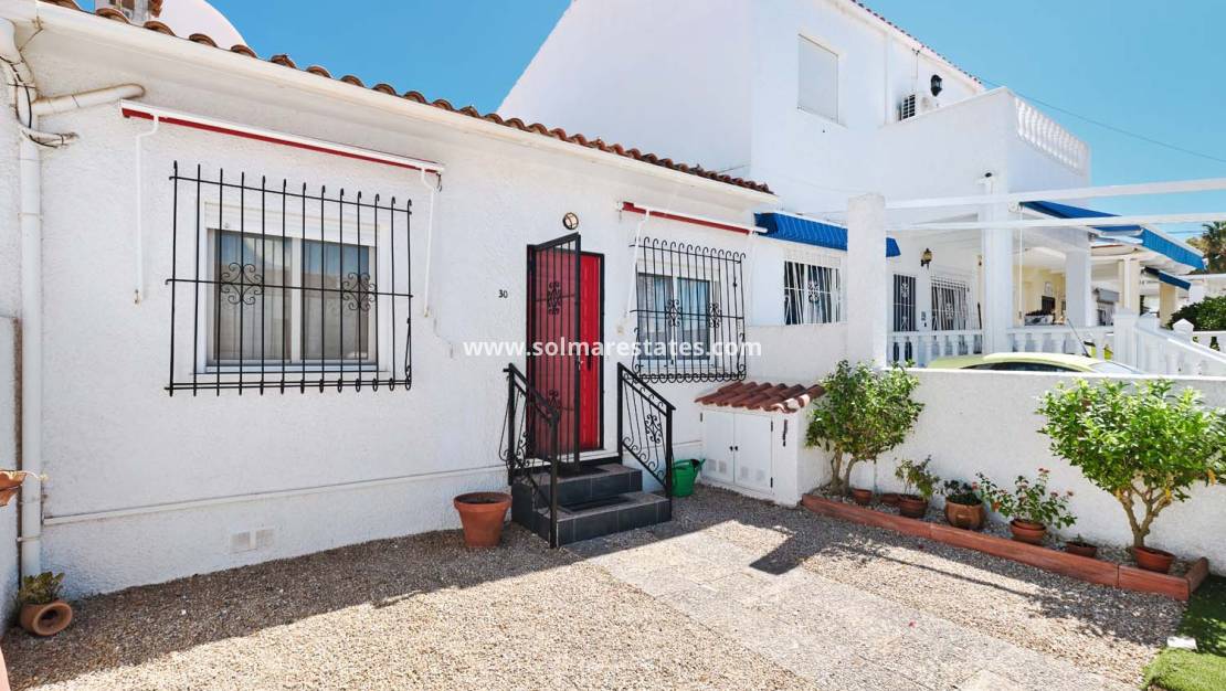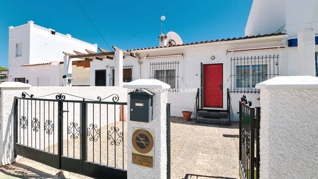 Een fantastische kans om een herenhuis met twee slaapkamers, één badkamer en een privézwembad te kopen, inclusief parkeergelegenheid op eigen terrein. Deze woning ligt in het charmante, groene dorp Pinar de Campoverde , op loopafstand van lokale voorzieningen en op slechts 10 km van de prachtige Blauwe Vlag-stranden van Torre de la Horadada en Mil Palmeras .