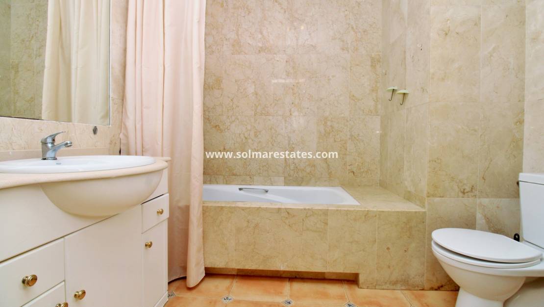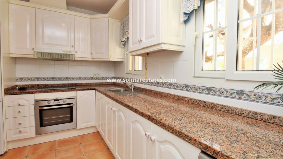 Deze aantrekkelijke vrijstaande villa staat op een royaal perceel van 488 m² in de gewilde wijk Villamartin. De woning biedt ruime, goed ontworpen accommodatie met drie slaapkamers, twee badkamers en een gastentoilet.
