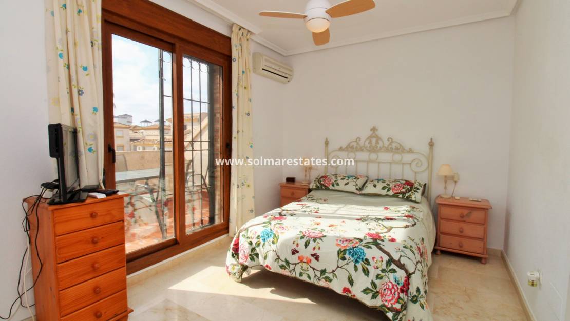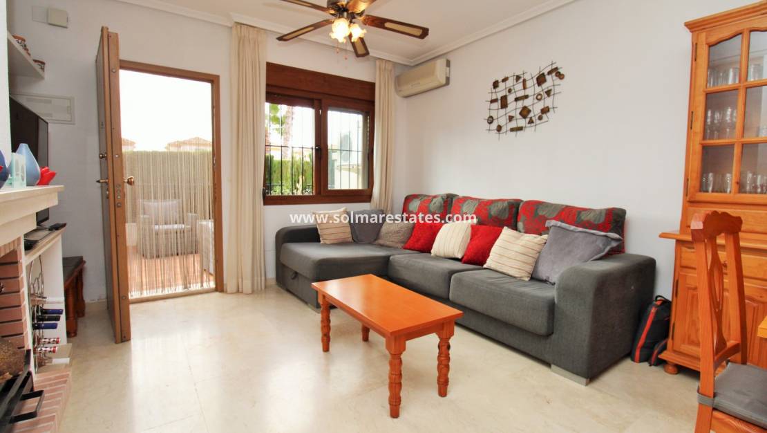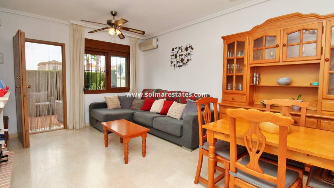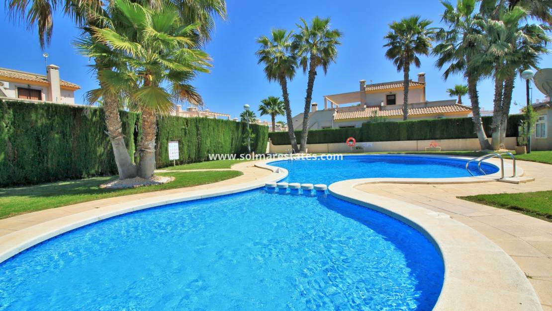 Deze goed gepresenteerde quadvilla met drie slaapkamers is gelegen in de gewilde woonwijk Oporto Golf in Pau 8, Villamartin. De woning is verdeeld over twee verdiepingen en biedt royale buitenruimte, waaronder een uitgebreid betegeld terras aan de voorzijde, een tuin met parkeergelegenheid en berging, en een privé dakterras. De villa kijkt uit op het gemeenschappelijke zwembad, wat zorgt voor een aangenaam uitzicht en gemakkelijke toegang.
