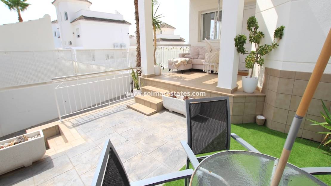 We zijn verheugd u deze lichte, ruime en uitzonderlijk goed gepresenteerde halfvrijstaande villa te mogen presenteren, ideaal gelegen op loopafstand van voorzieningen en op minder dan 10 minuten rijden van de goudgele stranden van La Marina , Costa Blanca Zuid. De luchthaven van Alicante ligt op slechts 28 minuten afstand en is uitstekend bereikbaar.