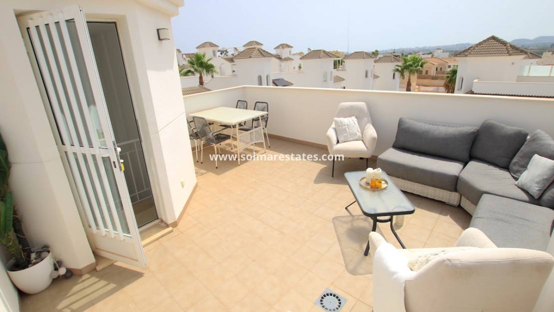 Dit huis maakt deel uit van het exclusieve Residential Bungavillas Sol en geniet een bevoorrechte ligging direct naast het gemeenschappelijke zwembad , omgeven door ruime ligweiden en prachtig onderhouden tuinen.