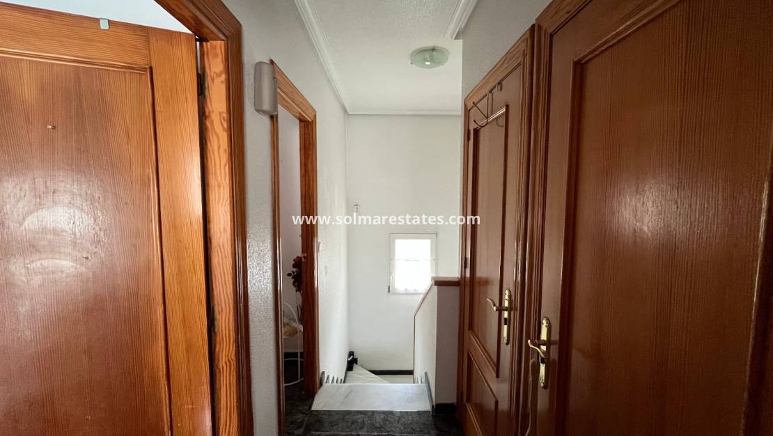 Op de eerste verdieping bevinden zich 2 slaapkamers met tweepersoonsbed, beide met inbouwkasten en warme en koude airconditioning. De hoofdslaapkamer heeft een klein balkon en 1 nieuwe badkamer met douche.