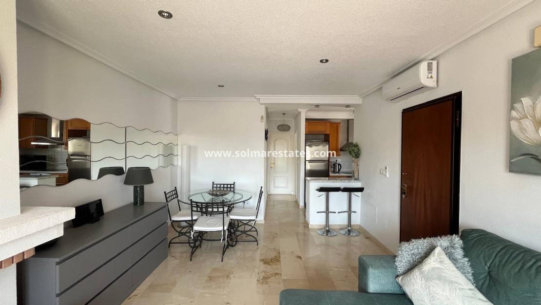 Wij zijn verheugd om u dit prachtig onderhouden appartement op de bovenste verdieping in een van de meest prestigieuze afgesloten complexen van Villamartin te mogen aanbieden. Het biedt comfort, gemak en een hoge levensstandaard.