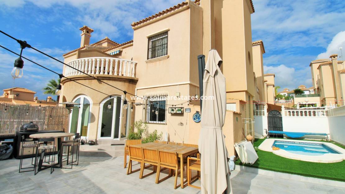 Deze uitzonderlijke quadvilla in Zodiaco-stijl is gelegen in de zeer gewilde woonwijk Zodiaco V, Villamartin , en is volledig gerenoveerd tot een uitstekende standaard . Elk detail is vernieuwd, inclusief nieuwe vloeren, keuken, badkamers, elektra, pleisterwerk en verlichting - wat resulteert in een frisse, moderne woning waar u volop van kunt genieten.