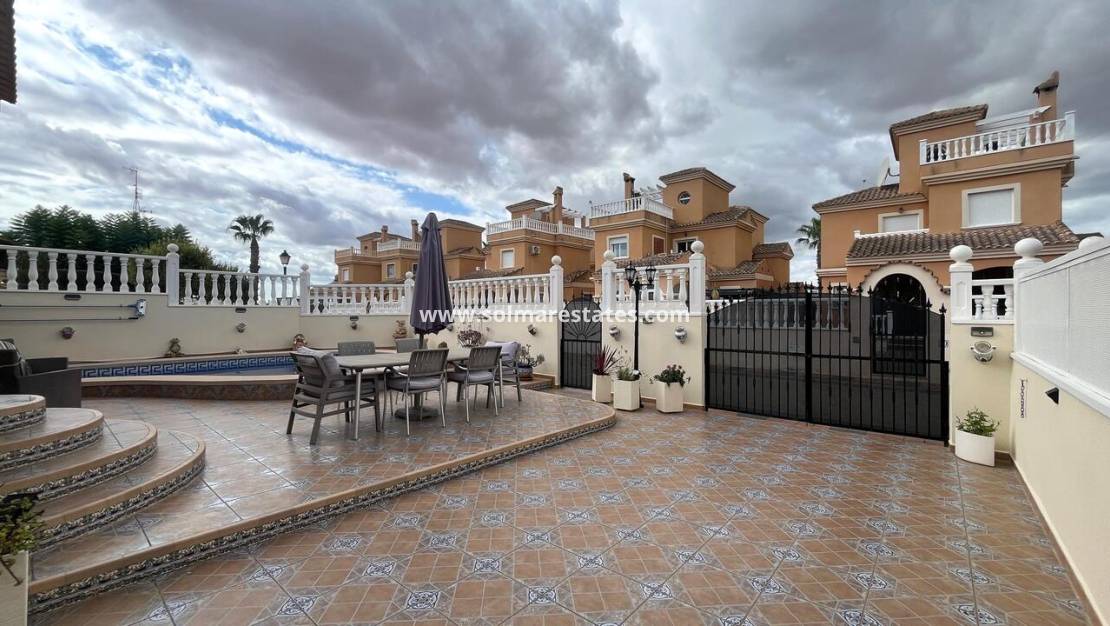 Buiten is de omlopende tuin volledig betegeld en onderhoudsarm. De tuin beschikt over een privézwembad, een aparte barbecueplek en elektrische zonneschermen voor moeiteloze schaduw met één druk op de knop. Deze fantastische buitenruimte is perfect om gasten te ontvangen, te ontspannen of gewoon te genieten van de Spaanse zon.