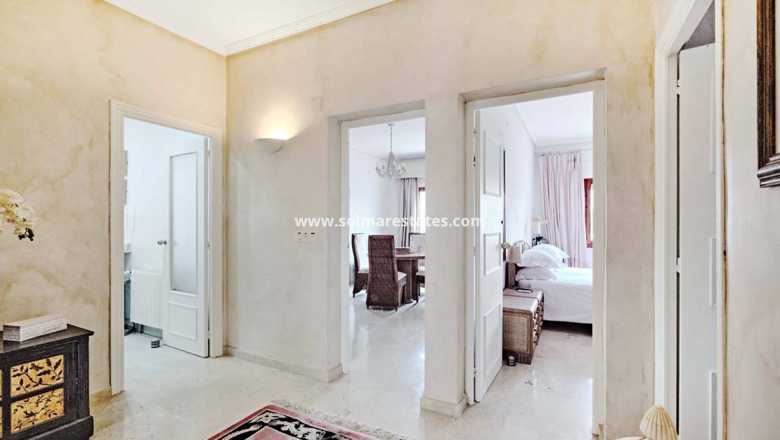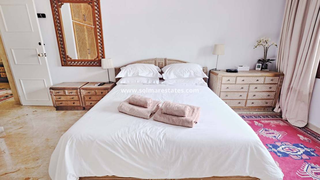 De hoofdslaapkamer is uitzonderlijk ruim en beschikt over inbouwkasten, airconditioning en een open en-suite badkamer met inloopdouche. Er zijn twee extra tweepersoonsslaapkamers met inbouwkasten – waarvan er één momenteel in gebruik is als kantoor – plus een vierde gastenslaapkamer met een eigen en-suite badkamer. Vanuit de gang is er ook een grote familiebadkamer met ligbad te bereiken.