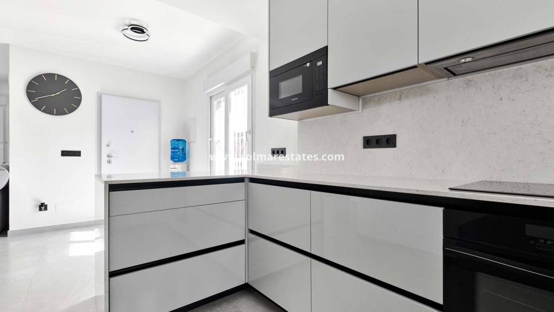 De voordeur geeft toegang tot een lichte en ruime open woon- en eetkamer met airconditioning en een stijlvolle accentmuur. De moderne, goed ontworpen keuken bevindt zich achter de eetkamer en wordt gescheiden door een ontbijtbar. De keuken biedt veel opbergruimte en hoogwaardige afwerking.