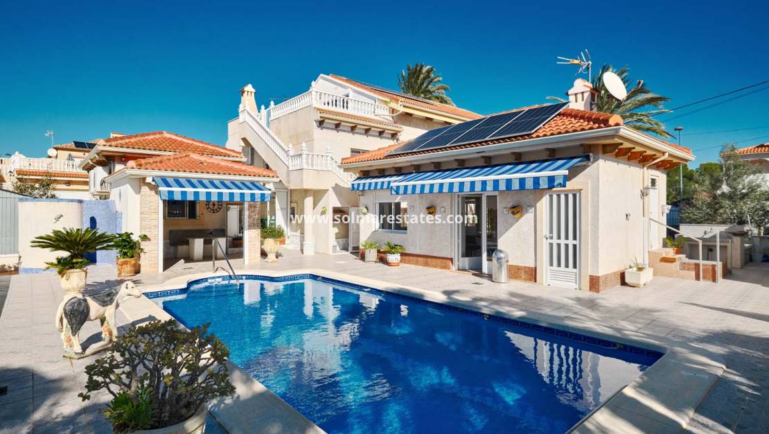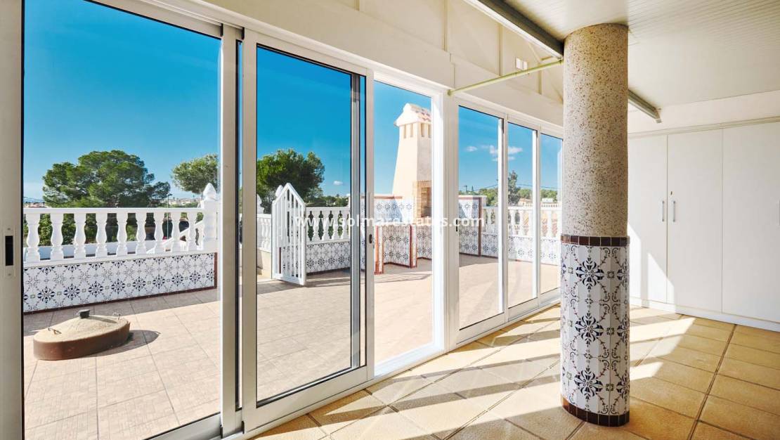 De villa ligt in het mooie, groene dorp Pinar de Campoverde, aan een rustige weg op loopafstand van het dorpscentrum met zijn vele voorzieningen en op slechts 10 km van de Blauwe Vlag-stranden van Torre de la Horadada en Mil Palmeras.
