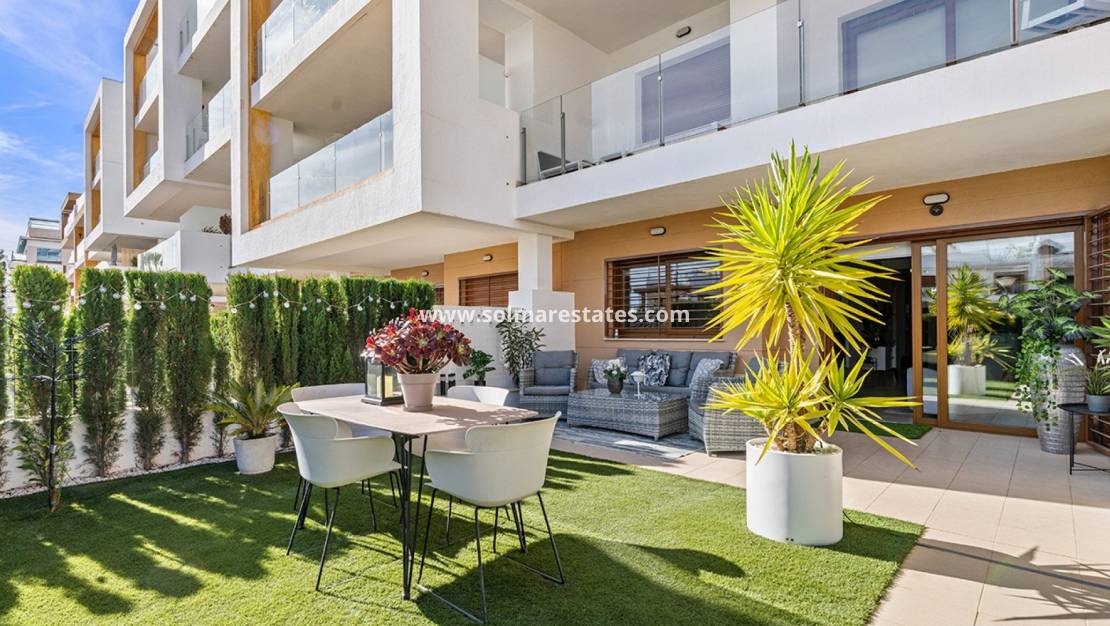 Dit elegante en goed onderhouden appartement op de begane grond in de prestigieuze wijk Los Dolses combineert een functionele indeling met hoogwaardige afwerking en een bevoorrechte ligging in een eersteklas wooncomplex. De woning beschikt over een privétuin van 75 m² , een perfecte buitenruimte om te ontspannen, gasten te ontvangen of te genieten van het mediterrane klimaat.