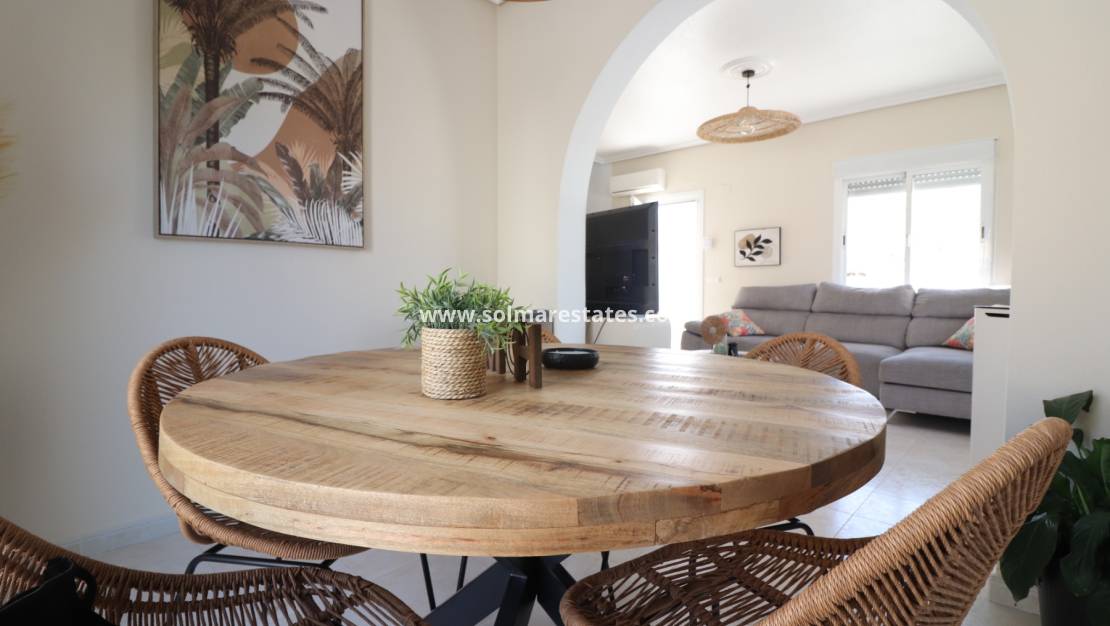 Deze heerlijke vrijstaande villa met twee slaapkamers en een westgevel is ideaal gelegen in de gewilde wijk Benimar, op slechts 5 minuten lopen van een uitstekende selectie bars, restaurants, een supermarkt en zelfs een McDonald's naast het pittoreske meer en park. La Marquesa Golf ligt op slechts 5 tot 10 minuten rijden en de prachtige stranden van Costa Blanca Zuid zijn in slechts 10 minuten te bereiken.