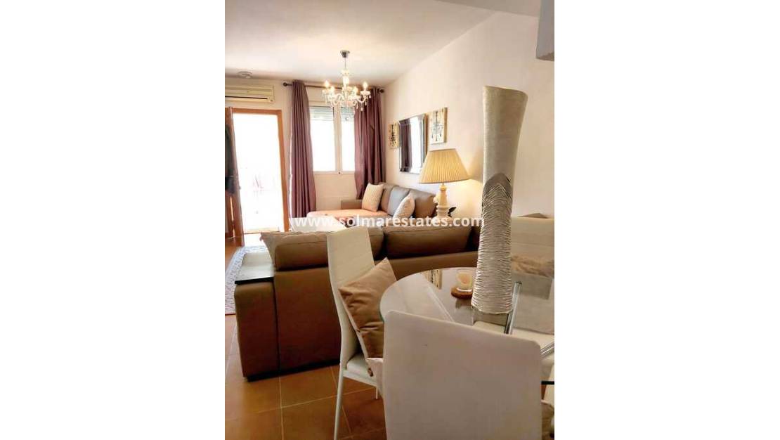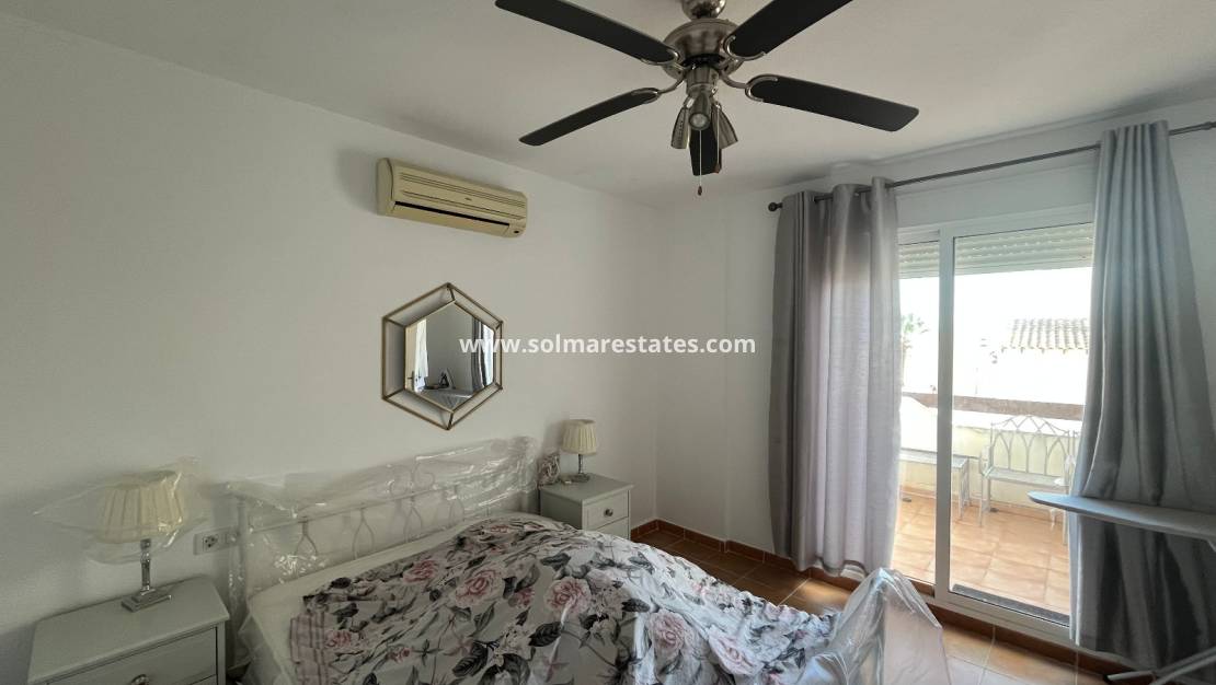 Op de begane grond bevindt zich een woon-/eetkamer met warme en koude airconditioning, een aparte volledig ingerichte keuken, 1 tweepersoonsslaapkamer met ingebouwde kasten en warme en koude airconditioning en een doucheruimte.