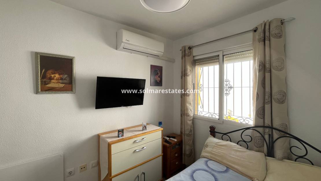 Op de begane grond bevindt zich een tweepersoonsslaapkamer met inbouwkasten, warme en koude airconditioning, een nieuwe plafondventilator en een doucheruimte.