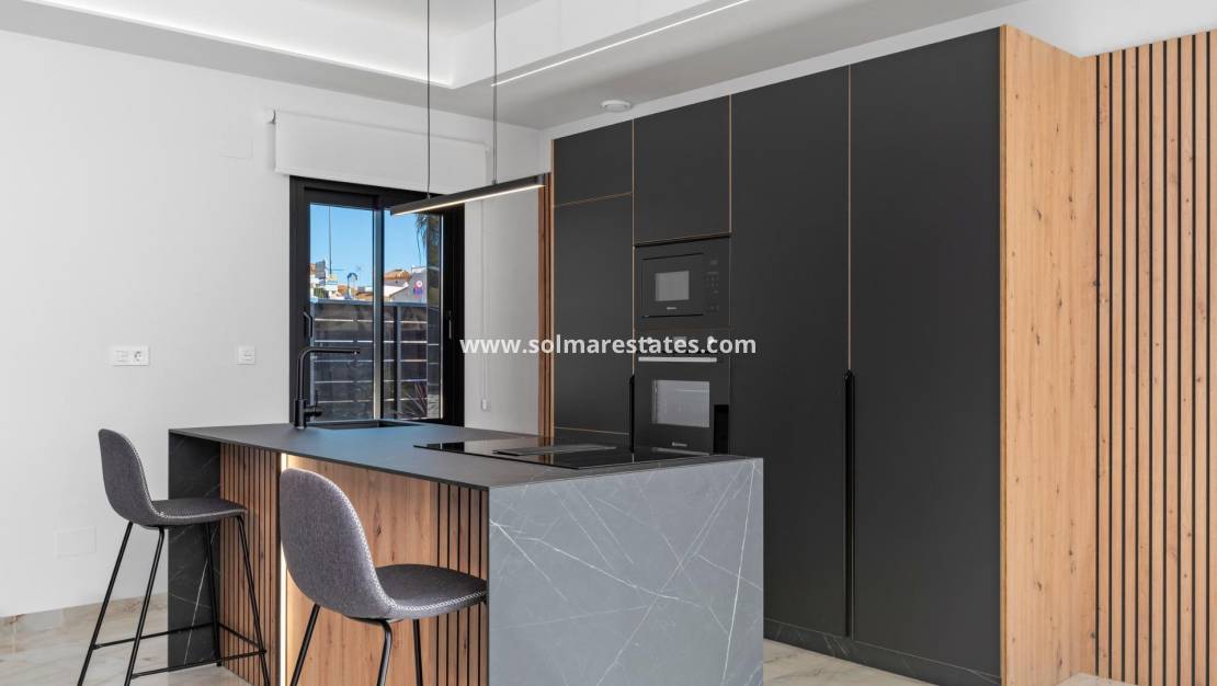 Nieuwbouwwoningen in La Finca Golf, Algorfa Exclusieve gelijkvloerse villa's naast de Golf La Finca in Costa Blanca Zuid Ontdek dit exclusieve nieuwbouwproject van 11 onafhankelijke villa's in het prestigieuze La Finca Golf Resort in Algorfa, een van de meest gewilde gebieden van de Vega Baja, Costa Blanca Zuid. Omgeven door groene landschappen, citrusboomgaarden en glooiende fairways, biedt deze locatie rust, privacy en een hoogwaardige mediterrane levensstijl, terwijl alle essentiële voorzieningen en attracties aan de kust binnen handbereik blijven. Moderne gelijkvloerse villa's met privézwembad en solarium Elke villa is zorgvuldig ontworpen op één niveau en biedt overal comfort en functionaliteit. De woningen beschikken over 3 ruime slaapkamers en 2 moderne badkamers, een open Amerikaanse keuken en een lichte woon- en eetkamer met grote ramen die direct uitkomen op het terras en de privétuin. Buiten beschikt elke villa over een privézwembad, een parkeerplaats op het perceel en een indrukwekkend privésolarium van 150 m², ideaal om het hele jaar door van de zon te genieten. Voor kopers die op zoek zijn naar extra ruimte, is er de mogelijkheid om tegen meerprijs een kelder of een vierde slaapkamer op een hoger niveau toe te voegen, zodat u de woning aan uw persoonlijke behoeften kunt aanpassen. Hoogwaardige specificaties en elegante afwerking Deze villa's zijn gebouwd met hoogwaardige materialen en afwerkingen om comfort, efficiëntie en een moderne stijl te garanderen. Tot de kenmerken behoren een versterkte veiligheidsdeur, gemotoriseerde rolluiken, volledig ingerichte keukens met apparatuur en badkamers met meubilair, spiegels en doucheschermen. Het solarium op het dak wordt geleverd met een zomerkeuken en pergola, waardoor het de perfecte omgeving is om buiten te eten en te ontspannen. Een LED-verlichtingspakket voor binnen en buiten is ook inbegrepen, wat zowel het ontwerp als de sfeer verbetert. Toplocatie in La Finca Golf Resort La Finca Golf Resort staat bekend om zijn kampioenschapsgolfbaan, luxe hotel, spafaciliteiten, restaurants en sportterreinen, allemaal gelegen in een veilige en goed onderhouden omgeving. Algorfa is een charmant Spaans dorpje met een ontspannen sfeer, lokale winkels en traditionele restaurants, terwijl nabijgelegen steden een breder scala aan diensten bieden. Belangrijkste afstanden La Finca Golf Club: op het terrein Stranden van Guardamar del Segura: 15 km Winkelcentra van Torrevieja en Orihuela Costa: 15 km Almoradi, Benijofar en Ciudad Quesada: 5 tot 10 km Internationale luchthaven van Alicante: 35 km Mediterrane levensstijl en slimme investering Met meer dan 300 dagen zon per jaar, uitstekende wegverbindingen en de nabijheid van stranden, golfbanen en winkelgebieden, zijn deze villa's ideaal als permanente woning, vakantiehuis of investeringsmogelijkheid aan de Costa Blanca. Verzeker u vandaag nog van uw nieuwe villa in La Finca Golf Mis deze kans niet om een moderne villa te bezitten in een van de meest exclusieve golfresorts in Algorfa. Neem vandaag nog contact met ons op voor meer informatie of om een privébezichtiging te regelen.