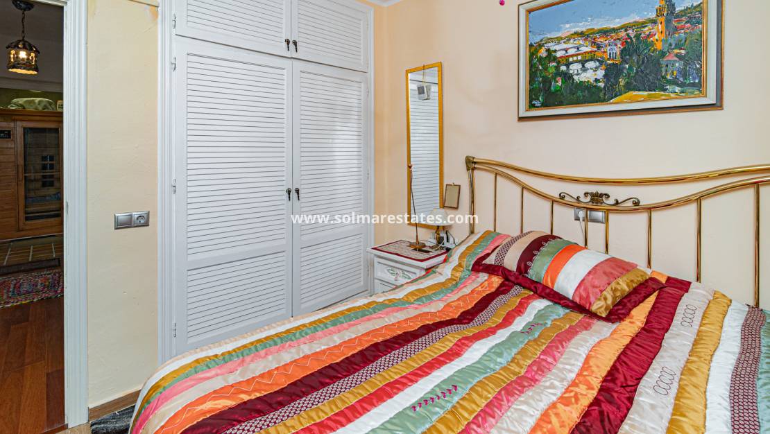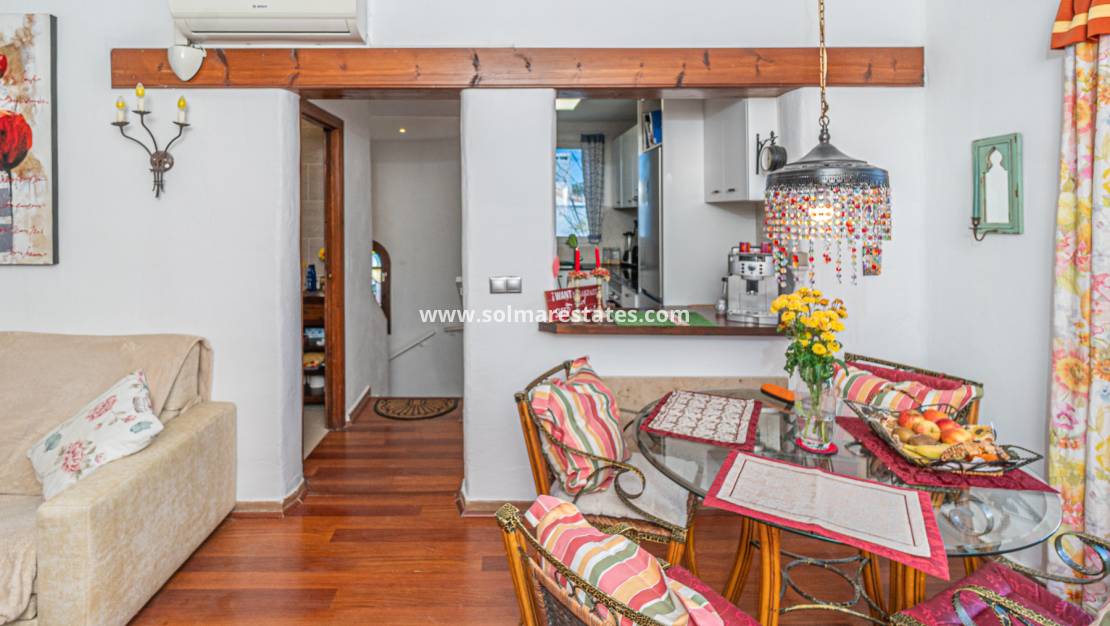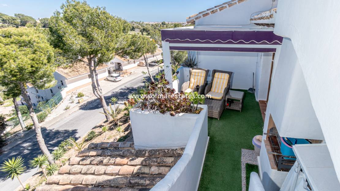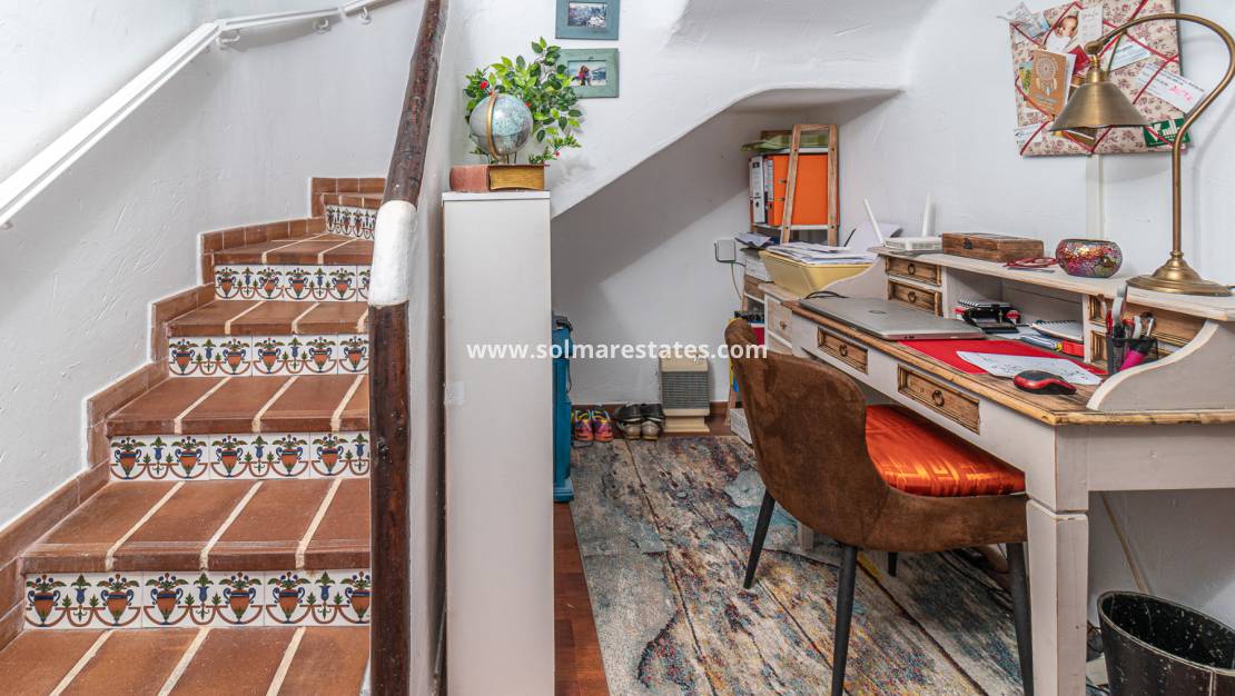 Boven baadt de woonkamer in natuurlijk licht en biedt een prachtig uitzicht over de omgeving. De begane grond bestaat uit een lichte woon- en eetkamer, een open keuken met ontbijtbar en een gastentoilet. Vanuit hier heeft u toegang tot zowel het balkon als het privésolarium, perfect om van de zon te genieten of gasten te ontvangen met een panoramisch uitzicht over de golfbaan van Villamartin.