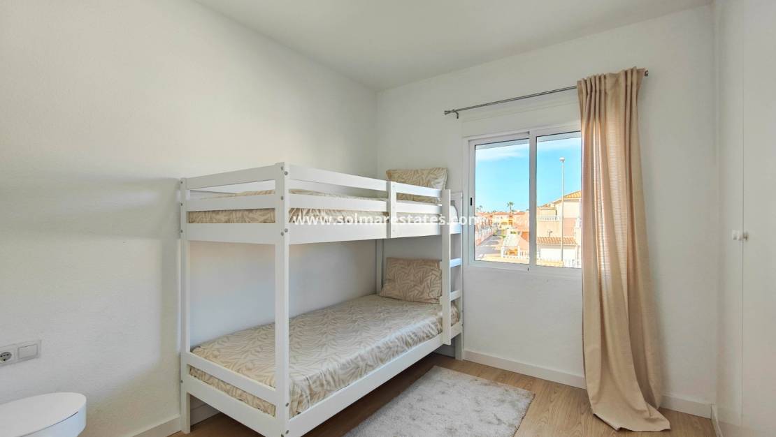 Ontdek deze charmante, volledig gerenoveerde bungalow op de bovenste verdieping, gelegen in de zeer gewilde wijk La Regia in Cabo Roig – helemaal klaar om in te trekken.