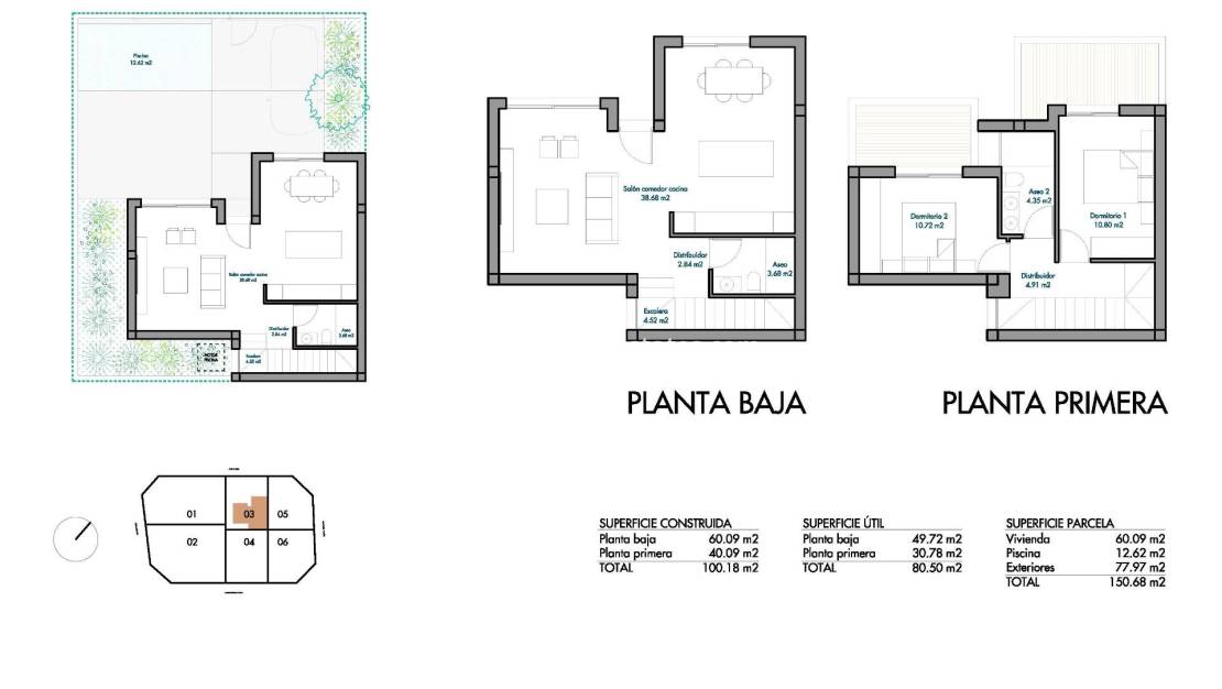 Nieuwbouwwoningen in El Alba Mediterranean Resort in Torre Pacheco Modern wonen in een groeiende resortomgeving Ontdek deze exclusieve nieuwbouwproject van slechts 6 onafhankelijke en semi-onafhankelijke villa's gelegen in El Alba Mediterranean Resort, in Torre Pacheco, Murcia. Deze opkomende woonwijk combineert moderne architectuur, recreatiefaciliteiten en een ontspannen mediterrane levensstijl. Gelegen tussen de Terrazas de la Torre Golf Club en de stad Roldan, biedt de locatie rust en toch dicht bij alle essentiële voorzieningen, waaronder supermarkten, restaurants, bars en banken. Eigentijdse villa's met privé buitenruimte Deze moderne villa's zijn verdeeld over twee verdiepingen en bieden een keuze uit 2 of 3 slaapkamers en 2 badkamers. Elke woning beschikt over een open keuken en woonkamer die zijn ontworpen om natuurlijk licht en comfort te maximaliseren. De eerste verdieping heeft open terrassen die ideaal zijn om van het milde klimaat te genieten, terwijl de begane grond uitkomt op een privétuin met zwembad. Er is parkeergelegenheid op elk privéterrein. Het interieur is elegant en functioneel, waardoor deze woningen ideaal zijn voor permanent wonen, vakantiegebruik of investering. De slaapkamers zijn voorzien van inbouwkasten met lades en de badkamers zijn volledig uitgerust met meubilair, spiegels en douchewanden. Hoogwaardige specificaties en afwerking Alle villa's zijn gebouwd volgens hoge normen, met gebruikmaking van hoogwaardige materialen en afwerkingen. De keukens zijn volledig ingericht en uitgerust met apparatuur, terwijl Porcelanosa-afwerkingen zijn gebruikt in de keukens, badkamers en tegels, wat een premium uitstraling geeft. Extra voorzieningen zijn onder meer buitenschrijnwerk met thermische onderbreking en dubbele beglazing, gemotoriseerde rolluiken in de slaapkamers en voorinstallatie van airconditioning. Elke woning beschikt ook over een privézwembad. Resortfaciliteiten en lokale voorzieningen El Alba Mediterranean Resort biedt een uitstekend aanbod aan gemeenschappelijke faciliteiten voor alle leeftijden. Bewoners kunnen genieten van een clubhuis met restaurant en chill-outruimte, een gemeenschappelijk zwembad, een bowlingbaan, paddlebanen en een kinderspeelzone. Momenteel wordt er een klein winkelcentrum ontwikkeld binnen het resort, wat extra gemak biedt met winkels en diensten dicht bij huis. Uitstekende locatie in de buurt van golfbanen, stranden en luchthavens Het resort wordt omringd door verschillende bekroonde golfbanen, waardoor het een aantrekkelijke optie is voor golfliefhebbers. De stranden van de Mar Menor liggen op ongeveer 15 km afstand en bieden kalm water en een breed scala aan watersporten. De internationale luchthaven van Murcia ligt op slechts 20 km afstand, terwijl Cartagena op ongeveer 30 km ligt en de stad Murcia op ongeveer 40 km. De luchthaven van Alicante ligt op ongeveer 90 km afstand. Dankzij de goede verbinding met het snelwegennet kunt u snel en gemakkelijk door de hele regio reizen. Uw nieuwe thuis aan de Costa Calida Deze nieuwbouwwoningen in El Alba Mediterranean Resort bieden een uitstekende prijs-kwaliteitverhouding, een modern ontwerp en een strategische ligging dicht bij golfbanen, stranden en voorzieningen. Neem vandaag nog contact met ons op voor meer informatie of om een bezichtiging te regelen en uw plek te verzekeren in dit spannende nieuwe project in Torre Pacheco.