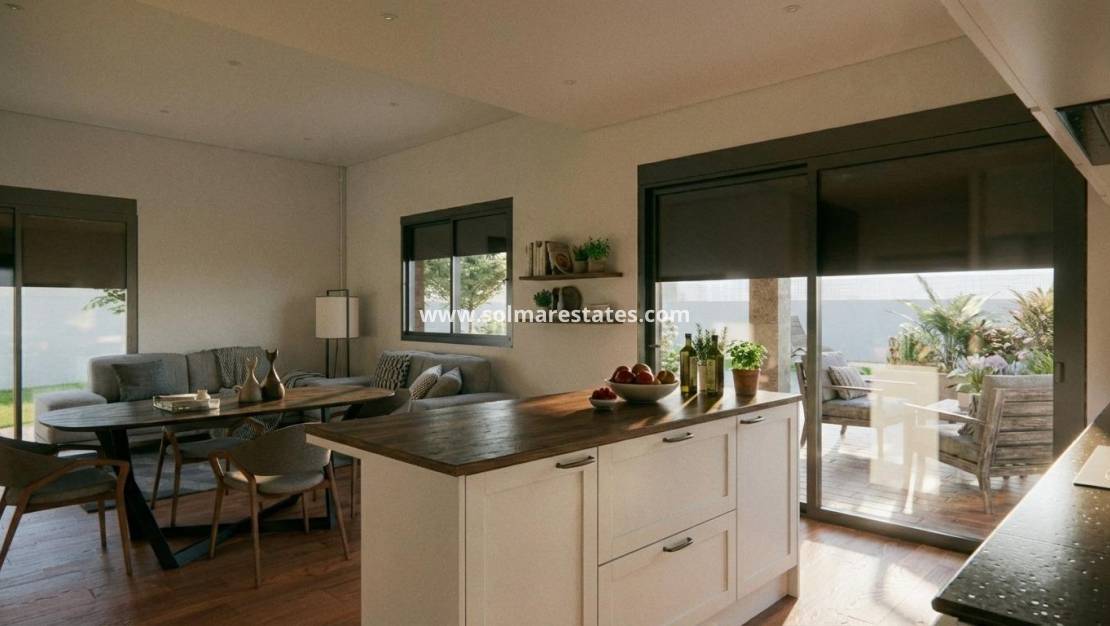 Nieuwbouwwoning met privézwembad in Vistabella, Jacarilla Exclusieve nieuwbouwwoning in een natuurlijke omgeving met golfbaan Deze nieuwbouwwoning onder zelfpromotie bevindt zich in de rustige omgeving van Vistabella, in de gemeente Jacarilla. Gelegen in een natuurlijke omgeving tussen de golfbaan van Vistabella en het stuwmeer van La Pedrera, biedt deze woning privacy, vrij uitzicht en een ontspannen mediterrane levensstijl. De omgeving is ideaal voor mensen die op zoek zijn naar rust, maar toch dicht bij de kust, golfbanen en dagelijkse voorzieningen willen wonen. Vistabella is een bekende woonwijk die populair is bij internationale kopers dankzij de golfbaan, lokale restaurants en de nabijheid van Orihuela Costa en Torrevieja. Jacarilla heeft zijn traditionele Spaanse charme behouden en biedt het hele jaar door lokale winkels, voorzieningen en een vriendelijke sfeer. Moderne gelijkvloerse indeling met ruime buitenruimtes De villa is verdeeld over één verdieping en is ontworpen om comfort, functionaliteit en natuurlijk licht te combineren. Het biedt 3 slaapkamers en 2 badkamers, waaronder een hoofdslaapkamer met eigen badkamer. De open woon- en eetkamer sluit naadloos aan op de moderne keuken, waardoor een lichte en uitnodigende leefruimte ontstaat. Een overdekt terras van 22 m² biedt directe toegang tot de privétuin, waar een privézwembad en aangelegde tuinen u uitnodigen om te genieten van het buitenleven. Het royale perceel van 750 m² omvat ook een parkeerplaats voor twee voertuigen. Privé-solarium met vrij uitzicht Een van de hoogtepunten van deze villa is het indrukwekkende privé-solarium van 120 m², dat toegankelijk is via een buitentrap. Van hieruit kunt u genieten van een panoramisch uitzicht op het omliggende landschap, perfect om het hele jaar door te zonnebaden, te entertainen of te ontspannen. Kwaliteitsspecificaties en energiezuinige voorzieningen De villa is gebouwd met hoogwaardige materialen en moderne specificaties om comfort en efficiëntie te garanderen. Tot de voorzieningen behoren een versterkte veiligheidsdeur, een aerothermisch systeem voor warm water, elektrische jaloezieën in de woonkamer en slaapkamers, en een voorinstallatie voor airconditioning. Deze elementen vormen een ideale basis voor een comfortabel en energiezuinig huis. Uitstekende locatie dicht bij golf, natuur en de kust Vistabella Golf ligt op ongeveer 2 km afstand, terwijl het stuwmeer La Pedrera op slechts 1,5 km van het pand ligt, ideaal voor natuurliefhebbers en buitenactiviteiten. De stranden van Orihuela Costa liggen op ongeveer 15 km afstand. De internationale luchthaven van Alicante ligt op ongeveer 55 km afstand en biedt gemakkelijke verbindingen naar belangrijke Europese bestemmingen. Verschillende andere golfbanen en winkelgebieden liggen op 10 tot 15 km afstand. Een unieke kans aan de Costa Blanca Deze nieuwbouwwoning in Vistabella is perfect als permanente woning, vakantiehuis of investeringsmogelijkheid op een gewilde locatie. Neem vandaag nog contact met ons op voor meer informatie en verzeker u van uw nieuwe woning in het hart van de Costa Blanca.