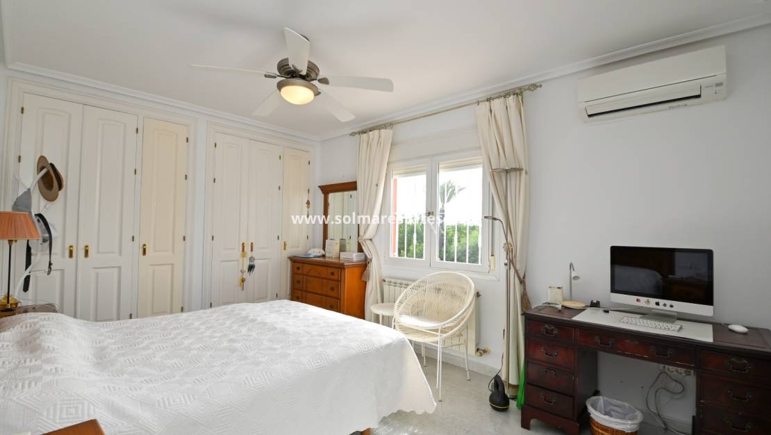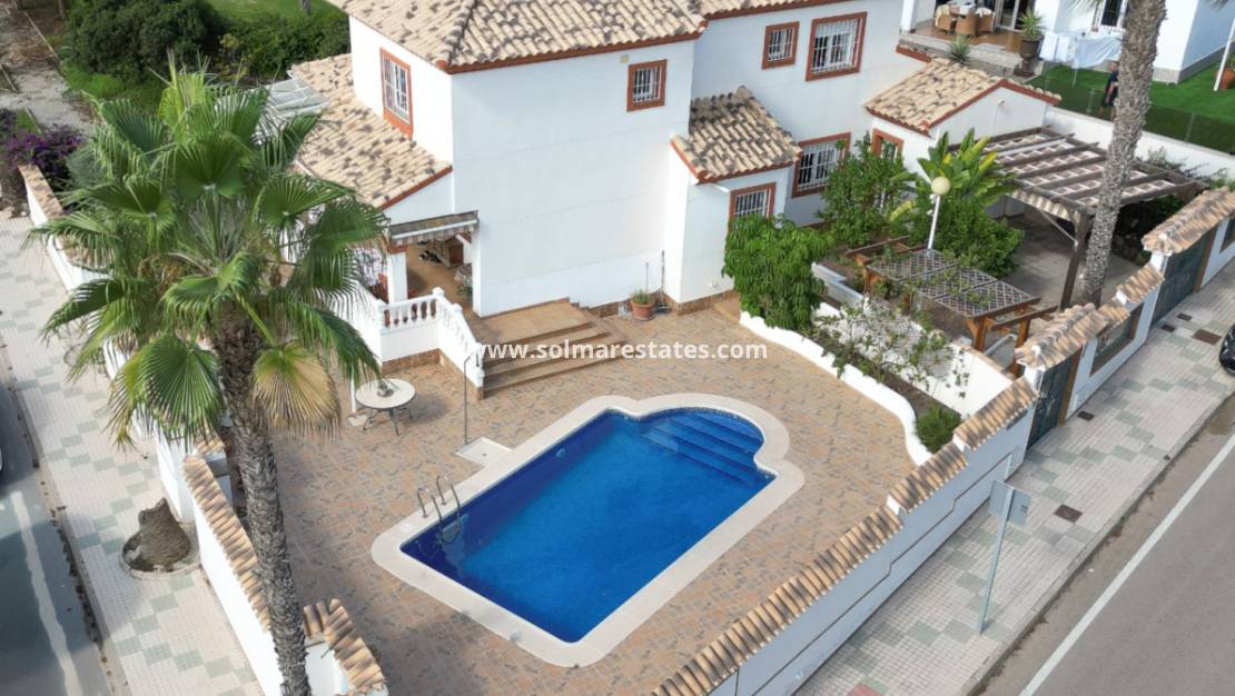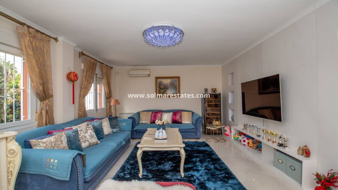 Deze villa met vier slaapkamers in Campoamor geniet een bevoorrechte hoekligging met vrij uitzicht over de golfbaan. De gewilde locatie combineert een praktische indeling, geschikt voor zowel permanent wonen als gebruik als tweede huis aan de Costa Blanca. De woning biedt privacy, uitstekende natuurlijke lichtinval en direct uitzicht op de fairway, terwijl het winkelcentrum La Fuente en het clubhuis van de Campoamor-golfbaan op korte loopafstand liggen.