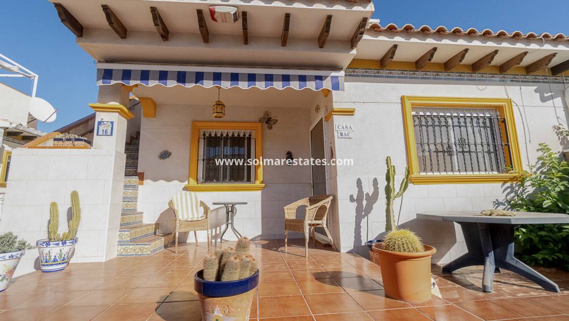 Gunstig gelegen bungalow op het zuiden met 65 m² woonruimte op één verdieping, perfect gelegen tussen de populaire plaatsen Cabo Roig en La Zenia.