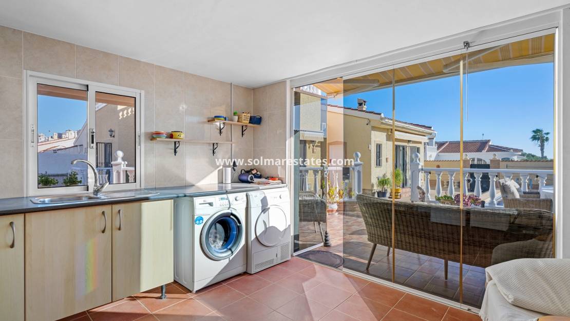 Deze prachtig gerenoveerde villa is gelegen in een van de meest prestigieuze wijken van Ciudad Quesada en combineert op perfecte wijze modern comfort, privacy en het beste van het mediterrane buitenleven. De woning staat op een ruim perceel van 587 m², volledig betegeld en met vrij uitzicht, en verkeert in onberispelijke, direct bewoonbare staat.