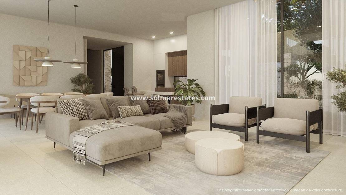 Luxe nieuwbouwwoning met uitzicht op zee in San Jaime, Benissa Exclusieve woning op een toplocatie aan de Costa Blanca Deze uitzonderlijke nieuwbouwwoning ligt in de prestigieuze wijk San Jaime in Benissa en biedt uitzicht op zee, privacy en een eigentijds mediterraan ontwerp op slechts 2 km van het strand. De woning ligt in een rustige doodlopende straat en garandeert rust, terwijl het toch dicht bij essentiële voorzieningen en recreatiefaciliteiten aan de noordelijke Costa Blanca ligt. San Jaime is een van de meest gewilde woonwijken in Benissa Costa, bekend om zijn elegante villa's, groene omgeving en de nabijheid van golfbanen, stranden en charmante kustplaatsjes. De villa staat op een royaal perceel van 1021 m2 met een totale bebouwde oppervlakte van 351 m2 en is momenteel in aanbouw, waarbij de structuur al voltooid is. Doordacht ontworpen over drie niveaus Deze moderne villa is verdeeld over drie zorgvuldig geplande verdiepingen, waarbij functionaliteit wordt gecombineerd met verfijnde esthetiek. Het entreeniveau omvat een privégarage, een wasruimte en een technische ruimte, waardoor praktische ruimtes discreet in het totale ontwerp zijn geïntegreerd. Op de begane grond sluit de open woon- en eetkamer naadloos aan op een volledig uitgeruste keuken, waardoor een lichte en uitnodigende sfeer ontstaat die ideaal is voor het dagelijks leven en entertainment. Op deze verdieping bevinden zich ook twee ruime slaapkamers, elk met een eigen badkamer. Het buitenterras en het privézwembad breiden de leefruimte uit en bieden een ideale omgeving om te ontspannen, te dineren en te genieten van het mediterrane klimaat met prachtig uitzicht op zee. De bovenverdieping is bestemd voor de master suite, compleet met eigen badkamer en directe toegang tot een groot open terras waar u kunt genieten van een panoramisch uitzicht en rustige zonsondergangen. Hoogwaardige specificaties en modern comfort De villa wordt opgeleverd met hoogwaardige afwerkingen en geavanceerde systemen voor maximaal comfort en efficiëntie, waaronder: Volledig ingerichte keuken met apparatuur Designbadkamers met meubilair Elektrische zonwering Video-intercom en alarmsysteem Aerothermisch systeem voor warm water en vloerverwarming Volledig geïnstalleerde airconditioning met luchtkanalen Toplocatie nabij golf, stranden en voorzieningen De woning ligt naast Club de Golf Ifach en dicht bij de populaire supermarkt Pepe La Sal. De kustlijn en baaien van Benissa Costa liggen op slechts 2 km afstand. Afstanden tot belangrijke bezienswaardigheden Strand 2 km Moraira 5 km Calpe 8 km Club de Golf Ifach 0,5 km Luchthaven Alicante 80 km Luchthaven Valencia 110 km Verzeker uzelf van uw droomvilla in Benissa Costa Deze uitstekende villa combineert moderne architectuur, uitzicht op zee en een bevoorrechte locatie in San Jaime. Neem vandaag nog contact met ons op voor meer informatie of om een privébezichtiging te regelen van deze exclusieve nieuwbouwwoning in Benissa.