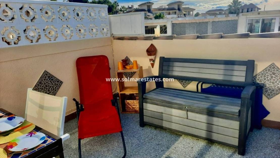 Een zonovergoten dakterras biedt een prachtig, open uitzicht en is ideaal om te ontspannen of gasten te ontvangen. Bewoners hebben toegang tot een groot gemeenschappelijk zwembad en een fraai aangelegd park. De locatie is uitstekend, op loopafstand van Villamartin Plaza, winkelcentrum La Fuente, winkels, bars, restaurants en diverse golfbanen.