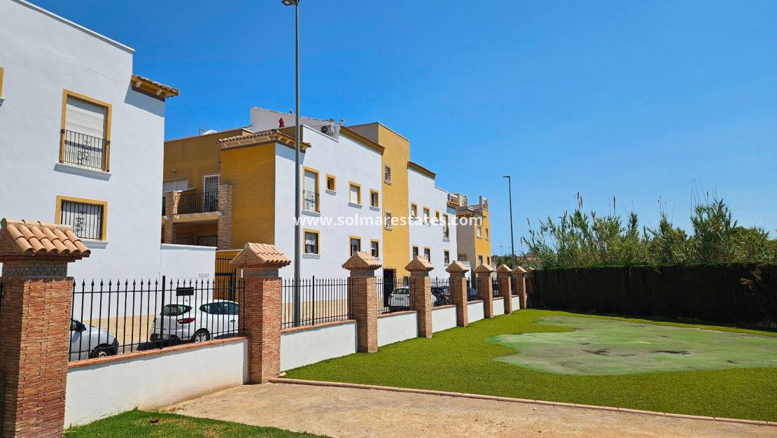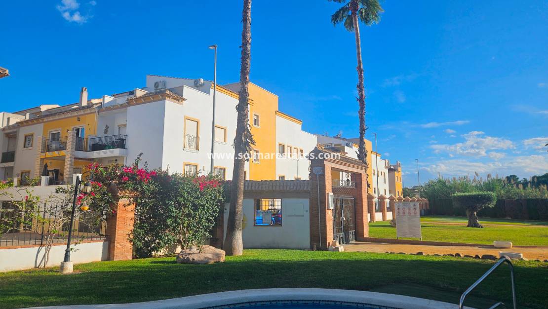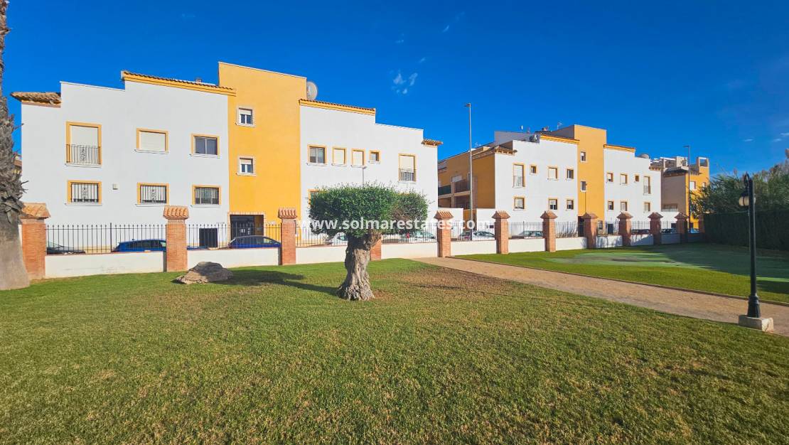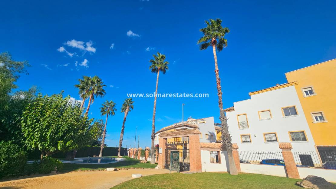 Gelegen in het beveiligde, afgesloten complex Residencial Villa Sol in Catral , biedt dit stijlvolle herenhuis modern wonen met royale ruimte, zowel binnen als buiten.