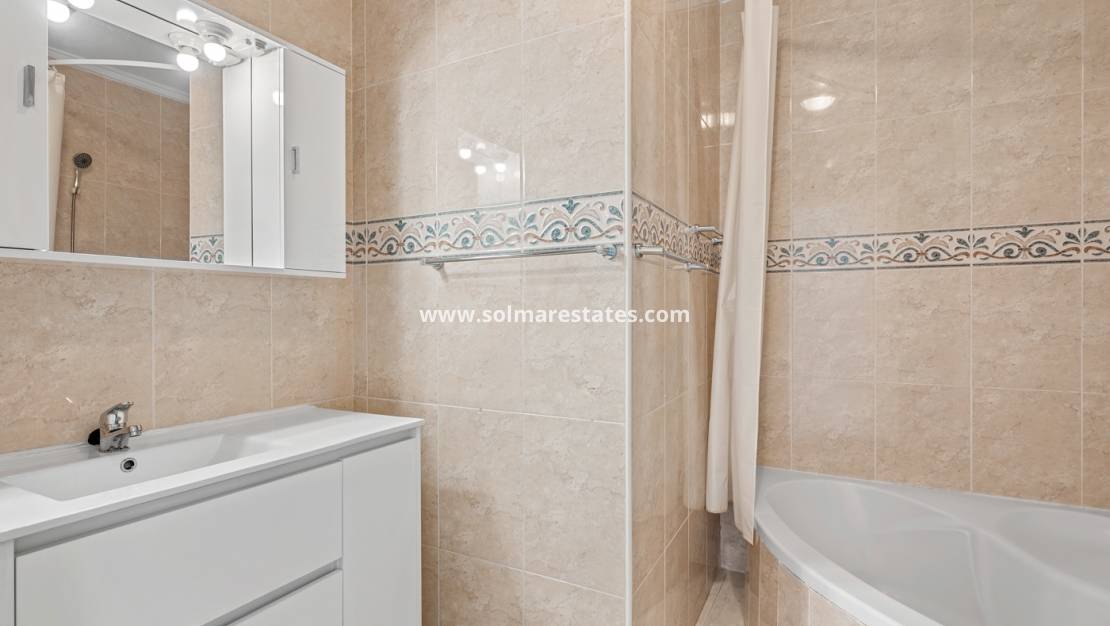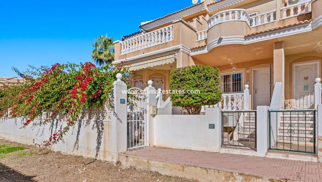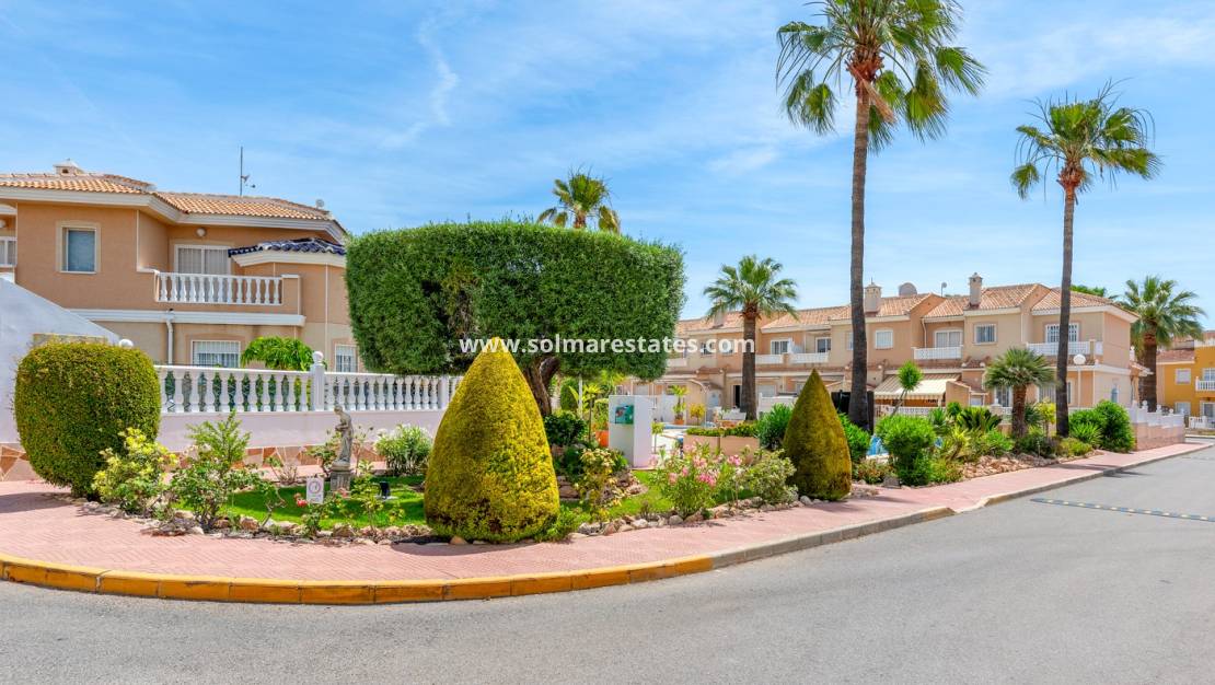 Ontdek dit charmante herenhuis in het gewilde wooncomplex Las Palmeras in Ciudad Quesada, een populaire wijk die bekendstaat om zijn rustige omgeving en de nabijheid van alle voorzieningen.