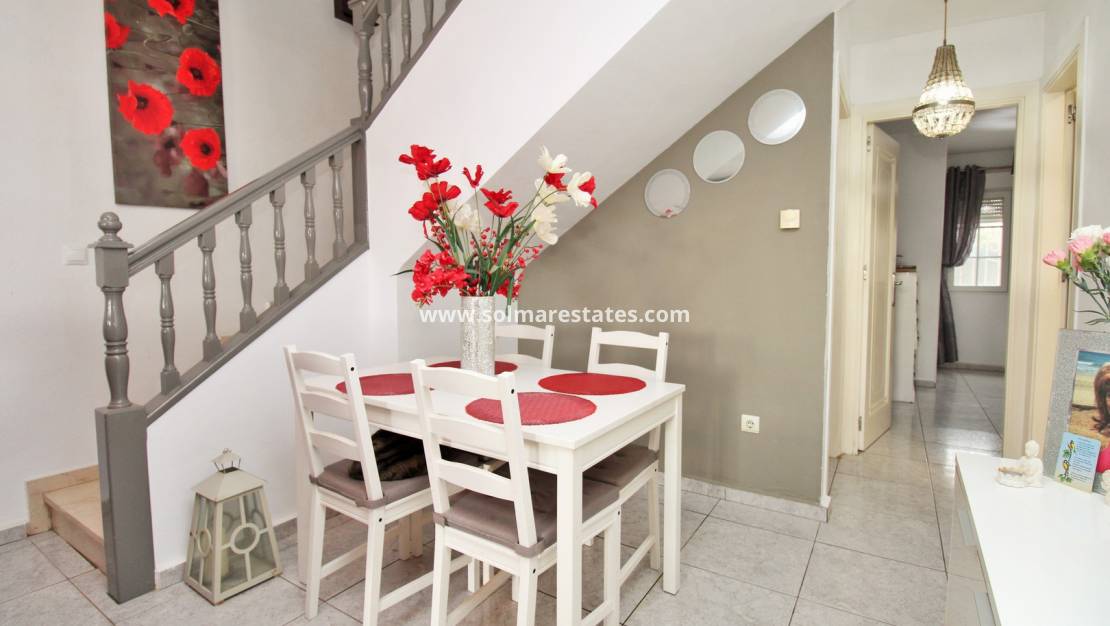 Een zeldzame kans om een hoekhuis op het zuidoosten te kopen in de zeer gewilde wijk La Rioja, vlakbij Los Dolses. Het huis bevindt zich aan het einde van een rij huizen en biedt een prachtig uitzicht over het gemeenschappelijke zwembad – een zeer aantrekkelijke en zelden beschikbare locatie binnen de wijk.