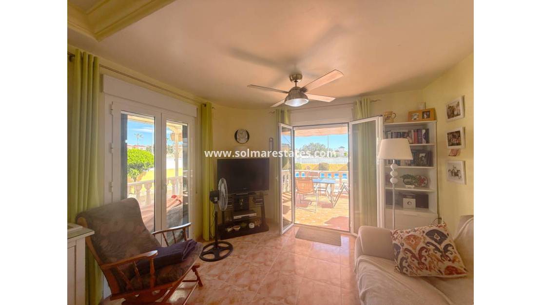 Binnen beschikt de villa over een ruime woon- en eetkamer met openslaande deuren naar de tuin en het zwembad. De indeling biedt de mogelijkheid om, indien nodig, een vierde slaapkamer te creëren door de bestaande woonruimte af te scheiden. De aparte keuken is gemakkelijk bereikbaar vanuit de woonkamer.