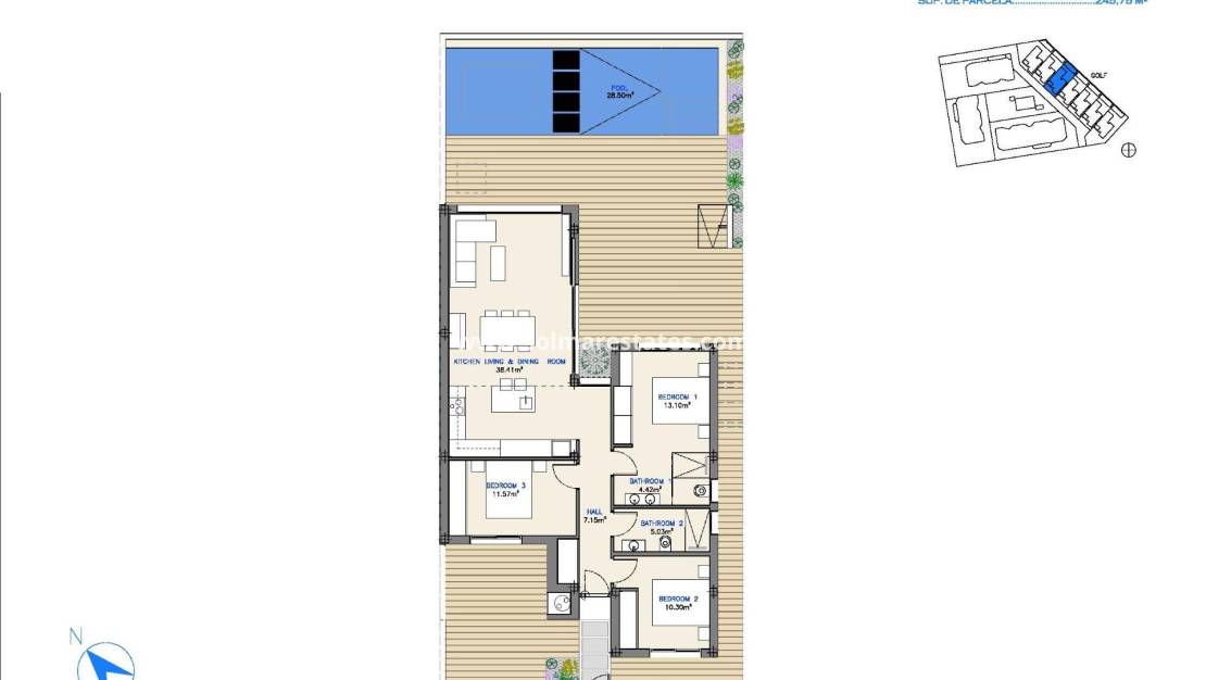 Nieuwbouwwoningen en villa’s direct aan de golfbaan in Los Alcázares, Costa Cálida Exclusief woonproject vlak bij het strand en de golfbaan Ontdek dit uitzonderlijke nieuwbouwcomplex in Los Alcázares, een van de meest gewilde kustplaatsen aan de Costa Cálida. Dit project is ideaal gelegen op slechts 1,2 km van de stranden van de Mar Menor en direct aan de golfbaan La Serena, en biedt een perfecte combinatie van modern wonen, een kustlevensstijl en een rustige golfomgeving. Los Alcazares is een charmant kustplaatsje dat bekend staat om zijn ontspannen sfeer, lange boulevard, lokale restaurants en voorzieningen die het hele jaar door beschikbaar zijn, waardoor het ideaal is voor zowel permanente bewoning als vakantiehuizen. Moderne appartementen en exclusieve villa's Het project bestaat uit 37 eigentijdse appartementen, verdeeld over drie laagbouwgebouwen, ontworpen rond een prachtig gemeenschappelijk zwembad en aangelegde tuinen. Kopers kunnen kiezen uit appartementen met 2, 3 of 4 slaapkamers, waaronder appartementen op de begane grond met terrassen, appartementen op de tussenverdiepingen en penthouses met privé-zonneterrassen die een vrij uitzicht bieden op de golfbaan en de zee. Daarnaast omvat het project 7 exclusieve gelijkvloerse villa's met 3 slaapkamers, elk met een privézwembad en een uitstekende ligging direct aan de golfbaan. Hoogwaardige voorzieningen en comfort Alle woningen zijn gebouwd met moderne afwerkingen en ontworpen met het oog op comfort en functionaliteit. Elke woning beschikt over volledig ingerichte badkamers met meubilair en doucheschermen, voorinstallatie voor centrale airconditioning en gemotoriseerde rolluiken in de slaapkamers. De appartementen beschikken tevens over een eigen parkeerplaats en berging in de ondergrondse parkeergarage, bereikbaar met de lift, wat zorgt voor gemak en veiligheid. Toplocatie in Los Alcázares Dit wooncomplex ligt op een strategische locatie met gemakkelijke toegang tot alle voorzieningen, golfbanen en belangrijke verkeersverbindingen. Het stadscentrum ligt op loopafstand en biedt supermarkten, winkels, restaurants en recreatieve voorzieningen. De Mar Menor staat bekend om zijn kalme en warme water, perfect om te zwemmen, zeilen en watersporten te beoefenen, terwijl La Serena Golf zeer gewaardeerd wordt om zijn unieke ontwerp met waterpartijen verspreid over de baan. Afstanden tot belangrijke bezienswaardigheden Stranden van de Mar Menor 1,2 km La Serena Golf direct naast de deur Roda Golf 4 km Cartagena 20 km Internationale luchthaven Murcia 35 km Luchthaven Alicante 95 km Uw ideale woning aan de Costa Cálida Of u nu op zoek bent naar een permanente woning, een vakantieverblijf of een slimme investering, dit project biedt een onovertroffen combinatie van locatie, kwaliteit en levensstijl. Neem vandaag nog contact met ons op voor meer informatie of om een bezichtiging te regelen en uw nieuwe woning in Los Alcázares veilig te stellen.