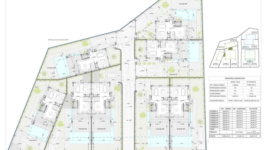 Deze villa's zijn gebouwd met hoogwaardige materialen en de nieuwste technologie om comfort en efficiëntie te garanderen. Voorzieningen omvatten voorinstallatie voor kanaalairconditioning, een aerothermisch systeem voor warm water, vloerverwarming in de badkamers en elektrische rolluiken.