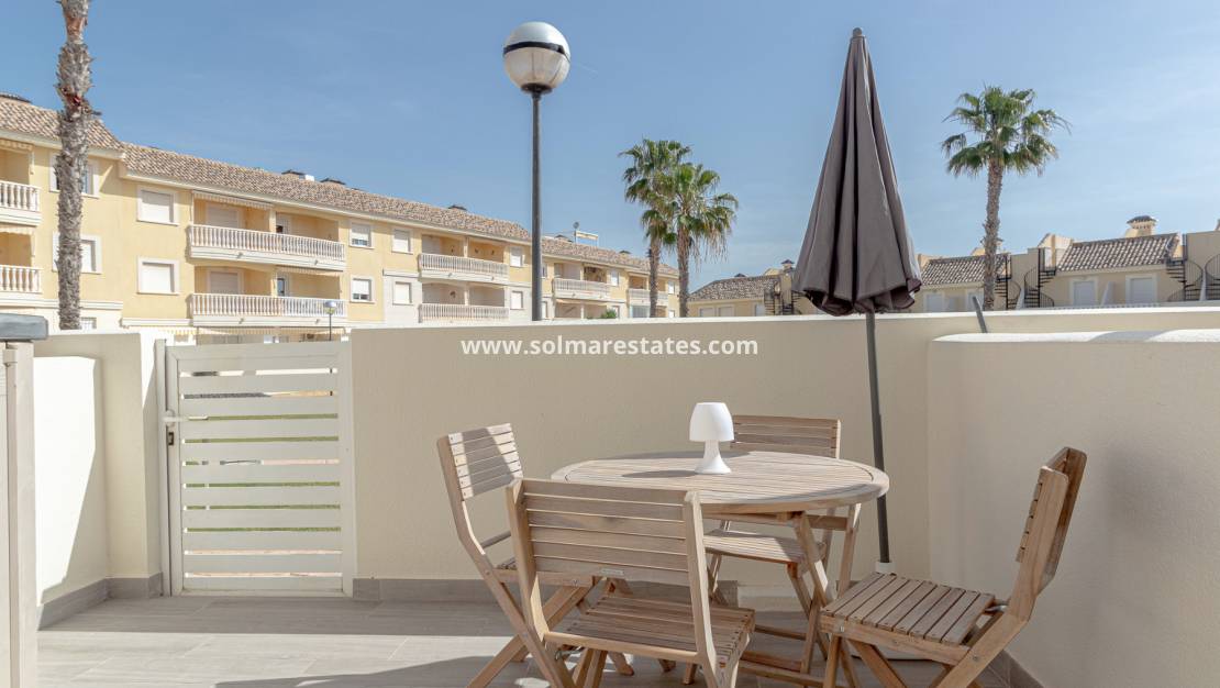 Deze fraai gepresenteerde rijtjeswoning met ramen aan twee zijden is perfect gelegen in een veilige en goed onderhouden woonwijk in Lomas de Cabo Roig.