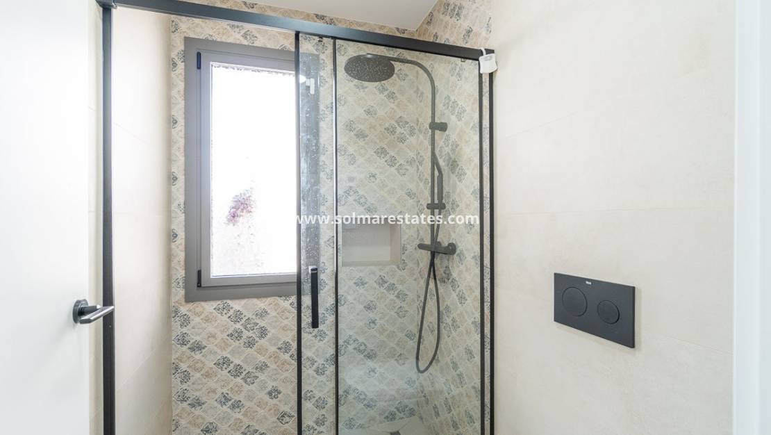 De woning beschikt over een eigen, onderhoudsvriendelijke tuin met zwembad, een perfecte buitenruimte om te ontspannen en te genieten van de zon aan de Costa Blanca.