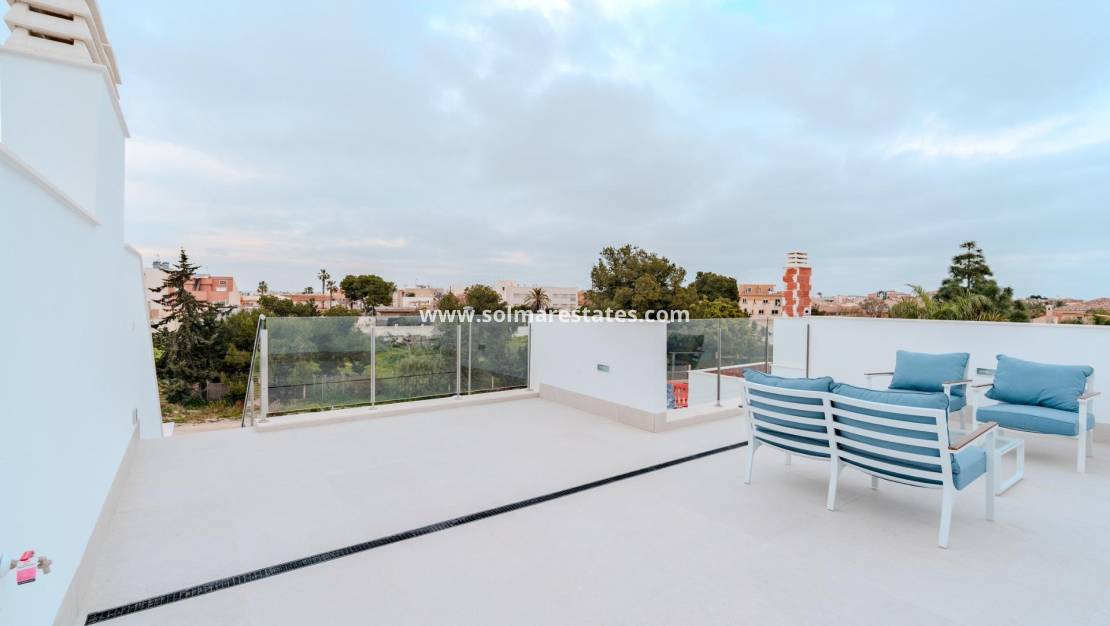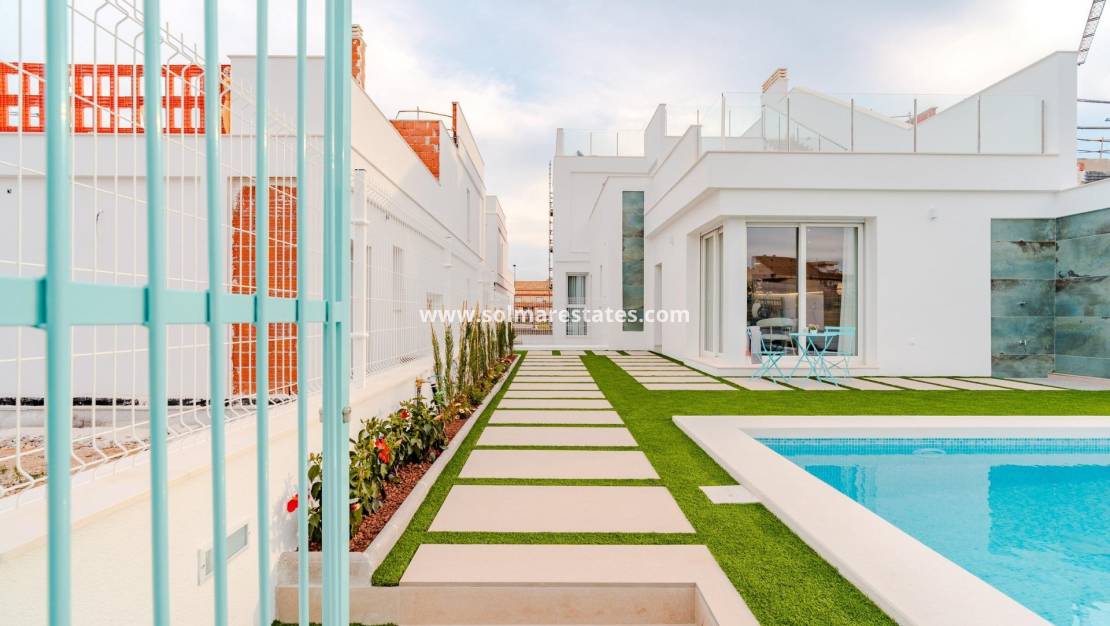Nieuwbouw Villa's vlakbij La Serena Golf en het strand in Los Alcázares Ontdek de exclusieve nieuwbouw villa's in de prestigieuze wijk Torre del Rame in Los Alcázares, Murcia. Deze locatie staat bekend om zijn mediterrane klimaat en biedt gemakkelijke toegang tot zowel La Serena Golf als de prachtige stranden van de Mar Menor, waardoor het een ideale plek is voor vrije tijd en ontspanning. Opties en kenmerken Kies uit twee prachtige villamodellen: een vrijstaande of halfvrijstaande optie. Beide bieden 3 slaapkamers, 3 badkamers, een kelder met garage, een privézwembad en een ruim solarium. Deze moderne, elegante ontwerpen hebben lichte, open ruimten vol natuurlijk licht, hoogwaardige afwerkingen, airconditioning en vloerverwarming in de badkamers. Elke villa heeft ook een aangelegde tuin en een volledig uitgeruste keuken. Toplocatie en gemakkelijke toegang De villa's zijn gunstig gelegen vlakbij de snelweg AP7 en hebben een goede verbinding met de Middellandse Zeekust, zodat je de veelzijdige schoonheid van de regio kunt verkennen. Het gebied biedt een breed scala aan nabijgelegen voorzieningen, waaronder supermarkten, winkels, sportcentra, scholen en apotheken, en zorgt voor een comfortabele, gemakkelijke levensstijl in een rustige woonomgeving. Bezienswaardigheden in de buurt La Serena Golf: 1 km Mar Menor Strand: 1 km Luchthaven Murcia: 35 km Haven van Cartagena: 22 km Plaatselijk winkelcentrum: 3 km