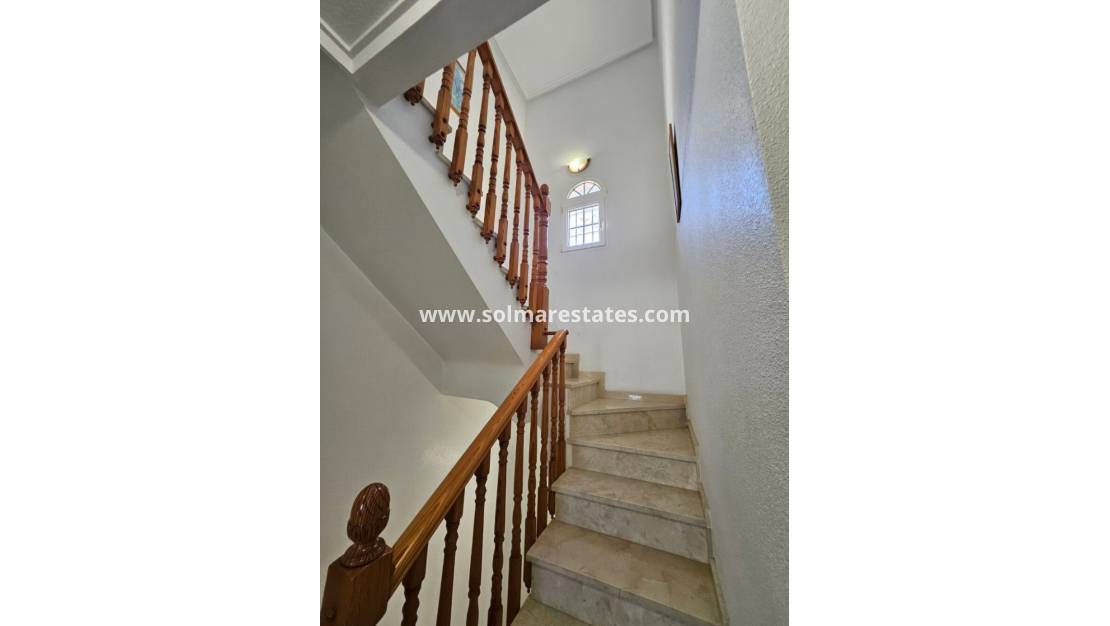 On the 1st floor there are 2 x double bedrooms both with fitted wardrobes & ceiling fans, the main bedroom has a balcony with views to the communal swimming pools, 1 x family bathroom & a private rooftop solarium.