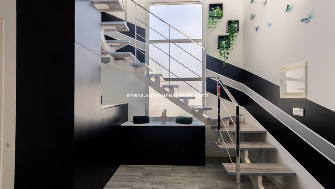 Perfectly situated this beautifully designed and built modern property is a unique opportunity arriving to the local market. The orientation and advanced design tecniques allow for natural light to flow throughout this wonderful property. The main living area is distributed over two levels, with a double bedroom and bathroom to the ground floor. A further tow bedrooms, bathroom and sun terrace above. A staircase leads from there to the ample solarium with fully equipped summer kitchen area, ideal for any type of social event whilst enjoying unrivalled views over the village and surrounding countryside. The privately walled pool area ideal also for those wanting to just relax in the Mediterranean sun. The village is a typical Spanish village with great charm. Within walking distance from any part of the village you can access an array of amenities including bars, restaurants, communal areas, municipal swimming pool, and more. Daya Vieja is situated only 15 minutes from the beaches of Guardamar del Segura and only 30 Minutes from Alicante airport, the nearest golf courses are approx 10-15 minutes away being located in Ciudad Quesada, La Marquesa and in Algorfa, La Finca.