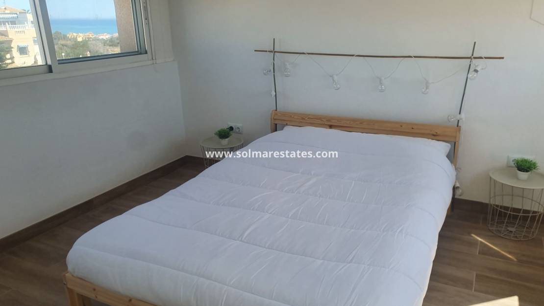 The house flows effortlessly and has an open plan lounge/diner and kitchen. There is a very convenient guest cloakroom on the ground floor. Stairs lead up and there are 2 bedrooms and a modern shower room. The master bedroom has a good sized balcony overlooking the pool and gardens and with sea views. From the master bedroom, stairs lead up to a bonus bedroom.