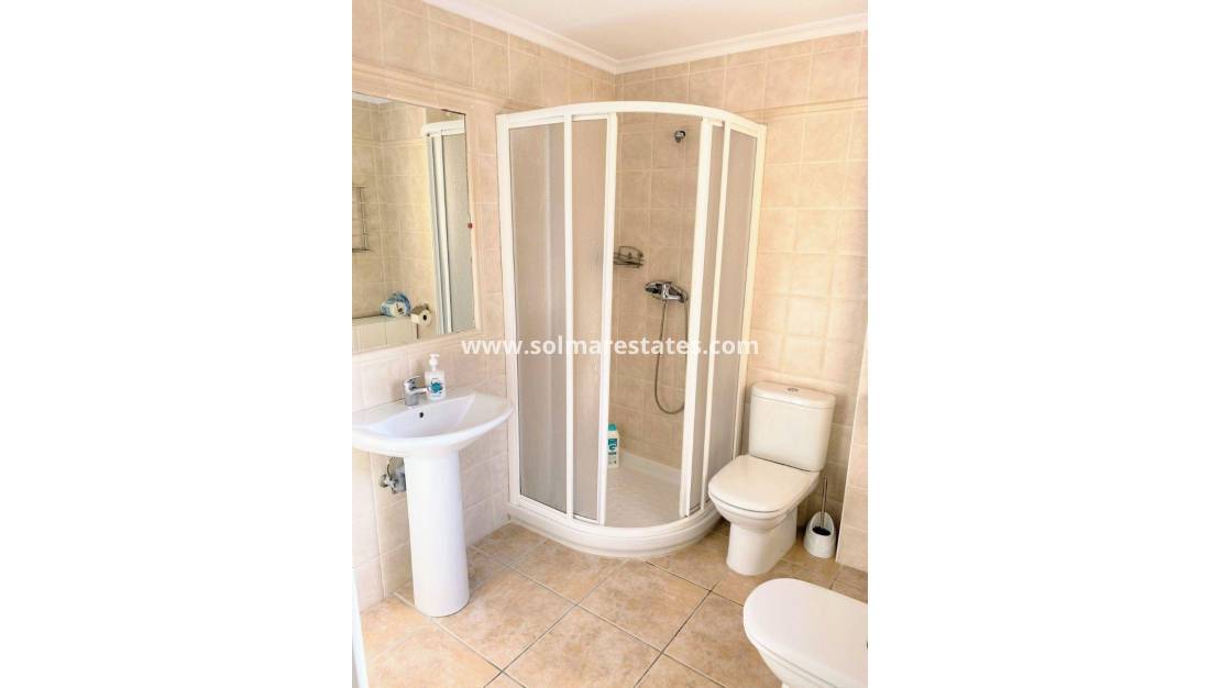 It is located around 25 minute's walk from the famous Villamartin Plaza & Golf Course where you will find numerous bars & restaurants, supermarket, banks, a taxi rank & the local bus stop. The golden Orihuela Costa beaches are just 5 minutes drive away as is the Zenia Boulevard shopping Mall. There are 3 other golf courses all within 5 minutes drive. There are tennis courts & tennis coaching available at the nearby Campoamor hotel. Alicante airport is 50 minutes & Murcia Corvera airport is a 35 minute drive.