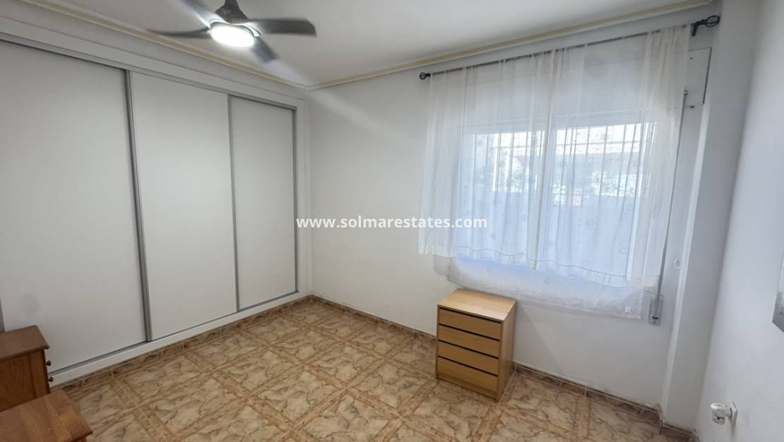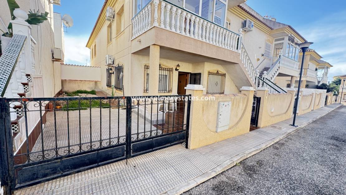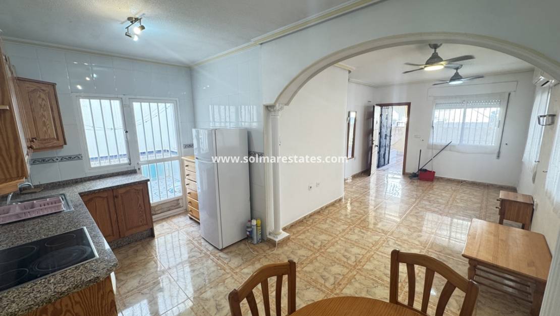 Lounge/diner with hot and cold A/C & ceiling fans, open plan fully fitted kitchen, rear patio area, 2 x double bedrooms with fitted wardrobes, 1 x shower room, front terrace, front & side garden with a driveway for off road parking, communal swimming pool & much more.