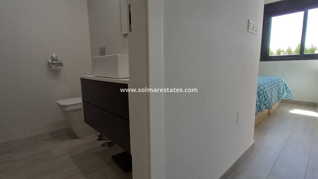 This property is only a 2 minute drive to the prestigious Las Colinas golf course & around 5 minutes dirve to Villamartin, Las ramblas and Campoamor golf courses. It is situated on a secure gated community & has stunning countryside and sea views. There is access to a lovely communal swimming pool.