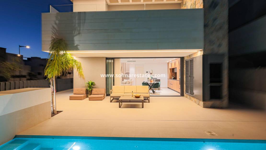 Luxury New Build Villas in Santa Rosalía Lake and Life Resort, Murcia Exclusive Villas in a Premier Gated Community Discover this exceptional collection of new build villas located within the prestigious Santa Rosalía Lake and Life Resort, one of the most innovative and sought-after residential resorts in the Murcia region. Surrounded by renowned golf courses and just 4 km from the beaches of the Mar Menor and the town of Los Alcázares, this development offers a unique blend of luxury, nature, and modern living. Contemporary Design with Premium Features Each villa is thoughtfully distributed over three floors and features: 3 spacious bedrooms, each with an ensuite bathroom Guest toilet for added convenience Open-plan living-dining area and fully fitted kitchen Private garden with a swimming pool featuring a waterfall Private solarium ideal for sunbathing or entertaining Basement (raw finish) offering flexible use On-site parking space These homes are built to the highest standards, including: Armoured front door Ducted air conditioning on ground and first floors Underfloor heating in bathrooms Aerothermal system for domestic hot water LED lighting (indoor and outdoor) Electric shutters in bedrooms High-performance aluminum exterior carpentry with thermal break and double glazing Home automation package included Built-in barbecue for outdoor dining Resort-Style Amenities for a Superior Lifestyle Santa Rosalía Lake and Life Resort spans over 126,000 m² of landscaped green zones. Residents enjoy exclusive access to: Crystal-clear lagoon-style lake of 17,000 m² with white sandy beaches Two private islands, one with a bar Several beach chiringuitos Clubhouse and leisure areas Walking and cycling paths Paddle and tennis courts, mini-golf, sports areas Dog parks and children's play zones 24-hour security and gated main entrance Prime Location with Excellent Connectivity Ideally situated for convenience and leisure: Los Alcázares beach and town: 4 km Lo Romero Golf Course: 9 km Roda Golf: 5 km Cartagena city: 15 km Murcia International Airport: 22 km Zenia Boulevard Shopping Centre: 30 km Secure Your Villa Today Whether you're seeking a primary residence, holiday home, or a high-return investment, these villas in Santa Rosalía Lake and Life Resort offer unmatched quality and lifestyle. Contact us now to receive more information and arrange a viewing.