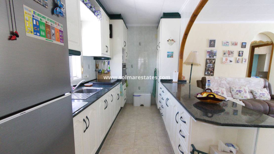 This villa is set out over one level and comprises of; a good size open plan lounge/diner with patio doors leading out onto a wonderful, slightly raised sun terrace with sun awnings which overlooks the pool and garden areas, so a great spot to relax or enjoy dining al fresco, an open plan fitted kitchen with breakfast bar and direct access out to the parking area and the main entrance to the property, three double bedrooms, the main bedroom with patio doors leading out to the garden, plus an en-suite bathroom with a modern walk-in shower and a family bathroom also with a walk-in shower.