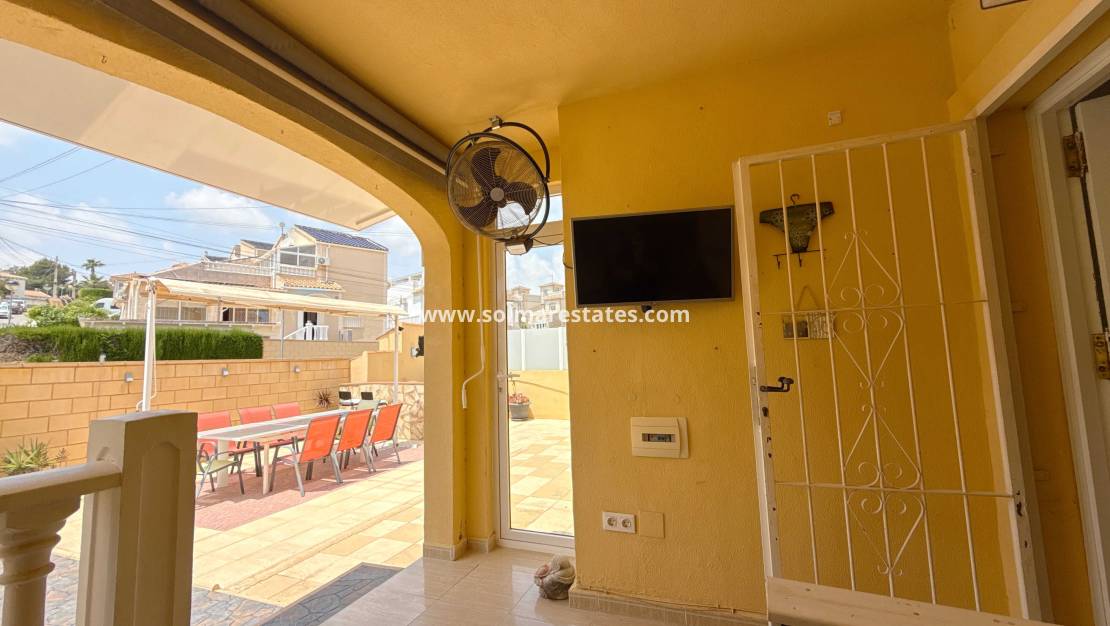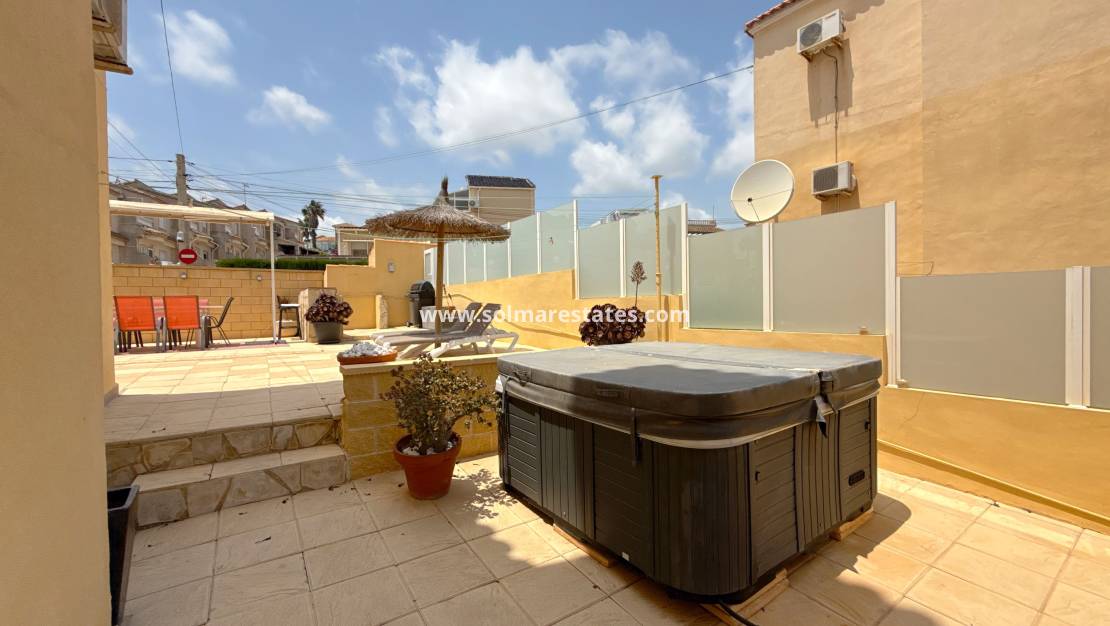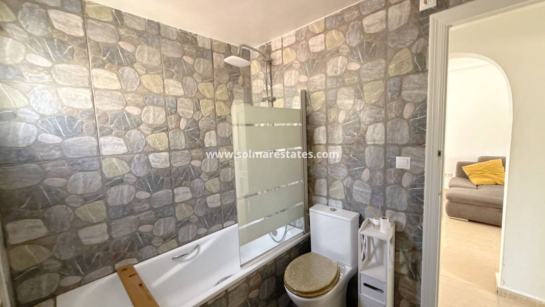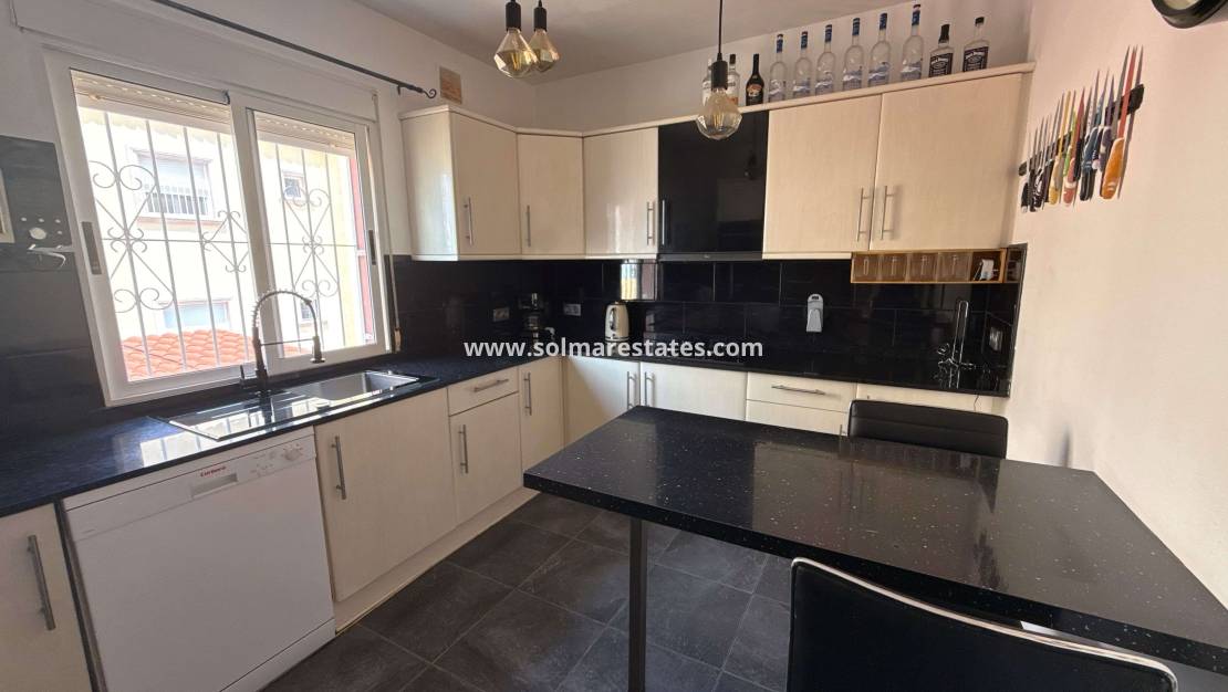 This is a fantastic ground floor apartment with a large underbuild which could be used a seperate apartment which has 3 double bedrooms a full bathroom and another kitchen. The property has a large terrace with a bbq area a jaccuzi and a large outhouse, the apartment up stairs has a reconfigured lounge dining area with a full Kitchen, bathroom and a double bedroom. The apartment also has the use of a community pool and is a 5 minute walk to all amenities, this property must be seen.