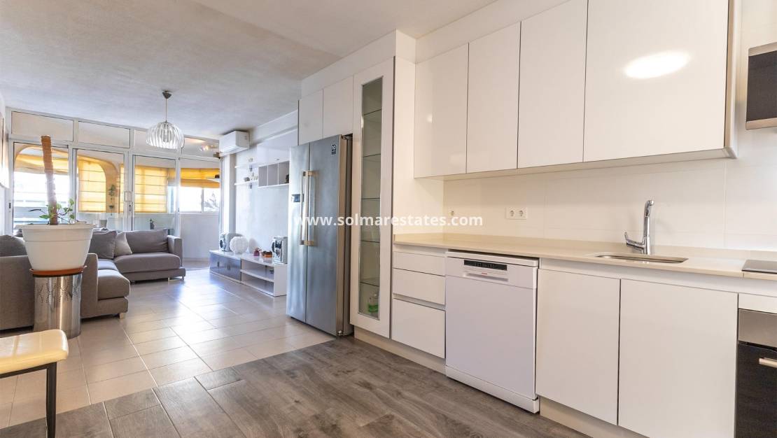 Apartment in Torrevieja, La Veleta area, 69 m² surface, 2 bedrooms, one bathroom, ready to move into, equipped kitchen, wooden interior carpentry, southwest facing, stoneware flooring, aluminum exterior carpentry. ~Extras: built-in wardrobes, elevator, balcony, communal pool, terrace, buses, parks, supermarkets, urbanization~