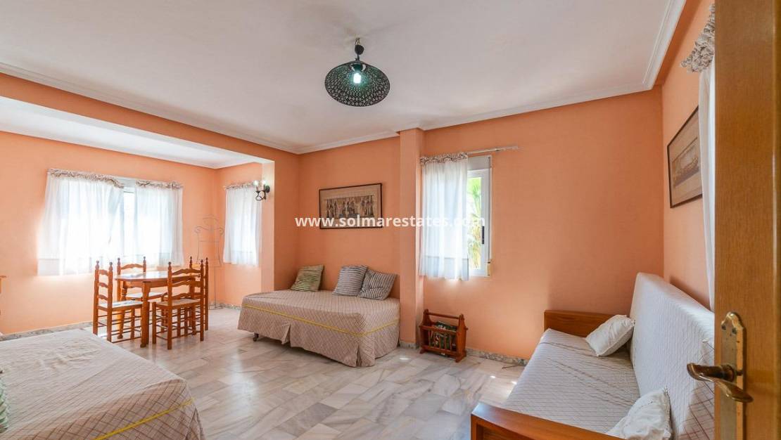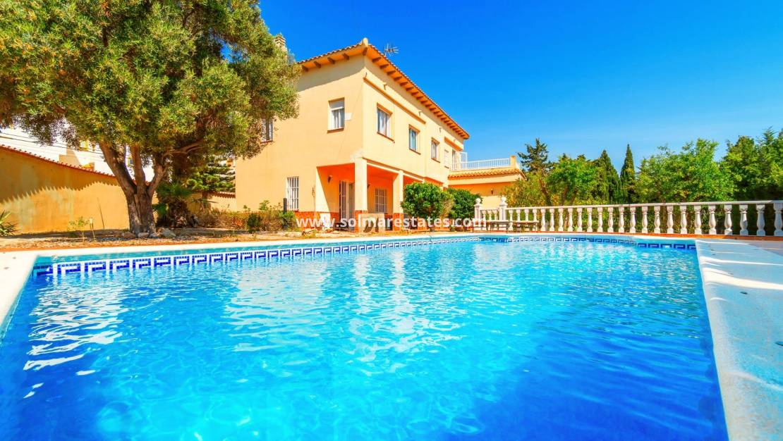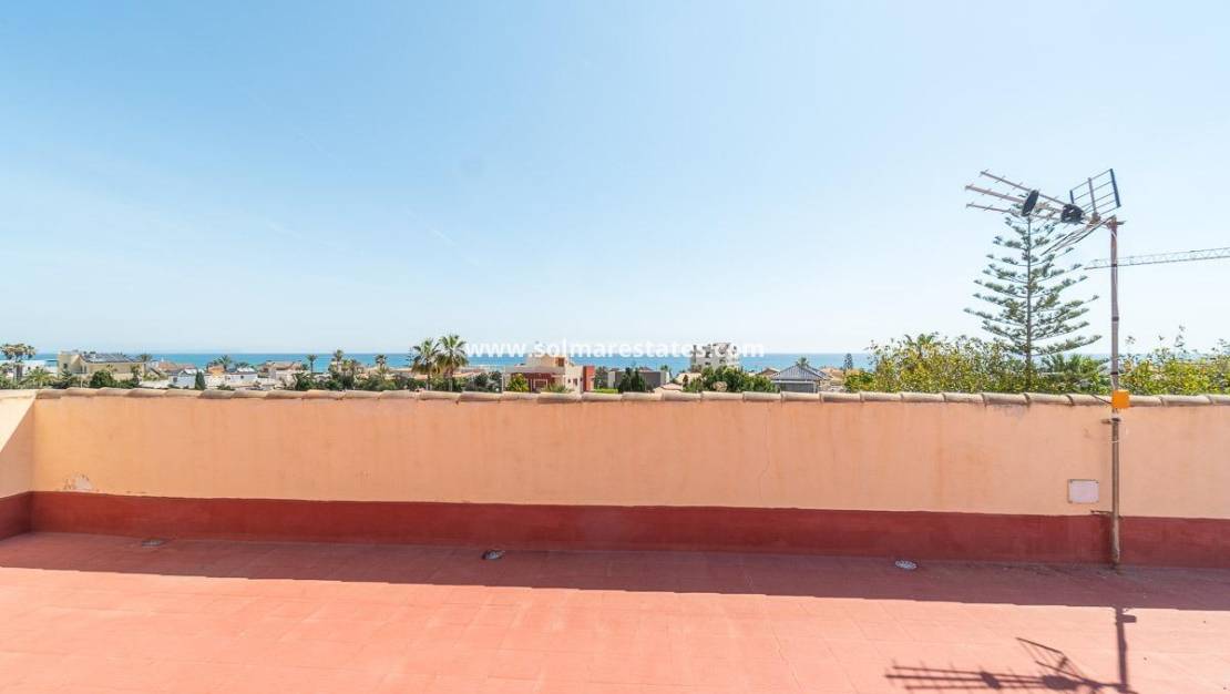 Located between La Mata and Cabo Cervera, this charming villa is just 200 meters from the beach and the beautiful natural dunes, in a privileged setting that invites you to relax and enjoy the sea and nature all year round. The house, with a classic style, is well maintained and full of character, making it ideal both as a permanent residence and as a holiday rental thanks to its generous size, location, and features.~~Set on a spacious 612 m² plot, it offers 274 m² of built area distributed across bright and spacious rooms. It includes four double bedrooms, three full bathrooms, a fully equipped kitchen, and a cozy living room with a fireplace that opens onto a large terrace with open views and sea views. The entire front of the house faces southeast, allowing abundant natural light and sunshine throughout the day, creating a warm and pleasant atmosphere.~~Outside, you’ll find a mature garden, private pool, barbecue area, patio, and several terraces perfect for enjoying the Mediterranean climate. The property also includes a garage, air conditioning, central heating with electric radiators, an alarm system, reinforced door, wood interior carpentry, and aluminum windows.~~Located in a quiet residential area with all services nearby—supermarkets, schools, medical centers, public transport, parks, and shops—this villa also has access to two tennis courts and a football pitch, with an annual maintenance fee.~~A special property, full of charm and space, in an unbeatable location to enjoy life by the sea with all comforts.