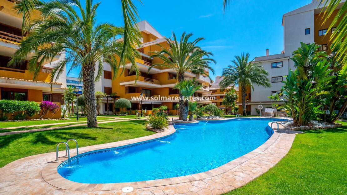This stylish ground-floor apartment, offering two bedrooms and two bathrooms, is situated in the highly regarded La Entrada development in Punta Prima—a popular coastal spot known for its laid-back charm and excellent local amenities. Ideally located within easy walking distance of numerous bars, restaurants, shops, and just a short walk to the beach, it combines everyday convenience with relaxed seaside living. The property comes furnished and enjoys a superb position overlooking one of the three beautifully maintained communal pools.