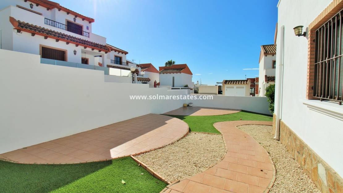 Set on the largest private plot in the entire urbanisation (240m2), this beautifully maintained Mediterranean-style detached 3 bedroom villa is located in the sought-after Res. El Palmeral/Illios development in Pau 8, Villamartin. The property enjoys a prime position within the community, just a short stroll from the attractive communal pool.
