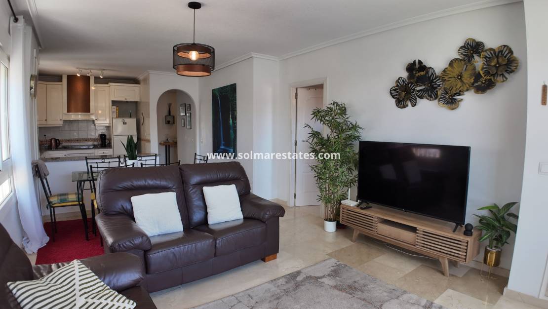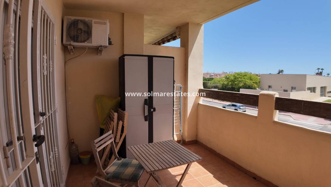Located on the first floor of the popular and sought-after Jumilla III development, this well-maintained corner apartment offers comfortable living just minutes from local amenities in Playa Flamenca, Costa Blanca South.